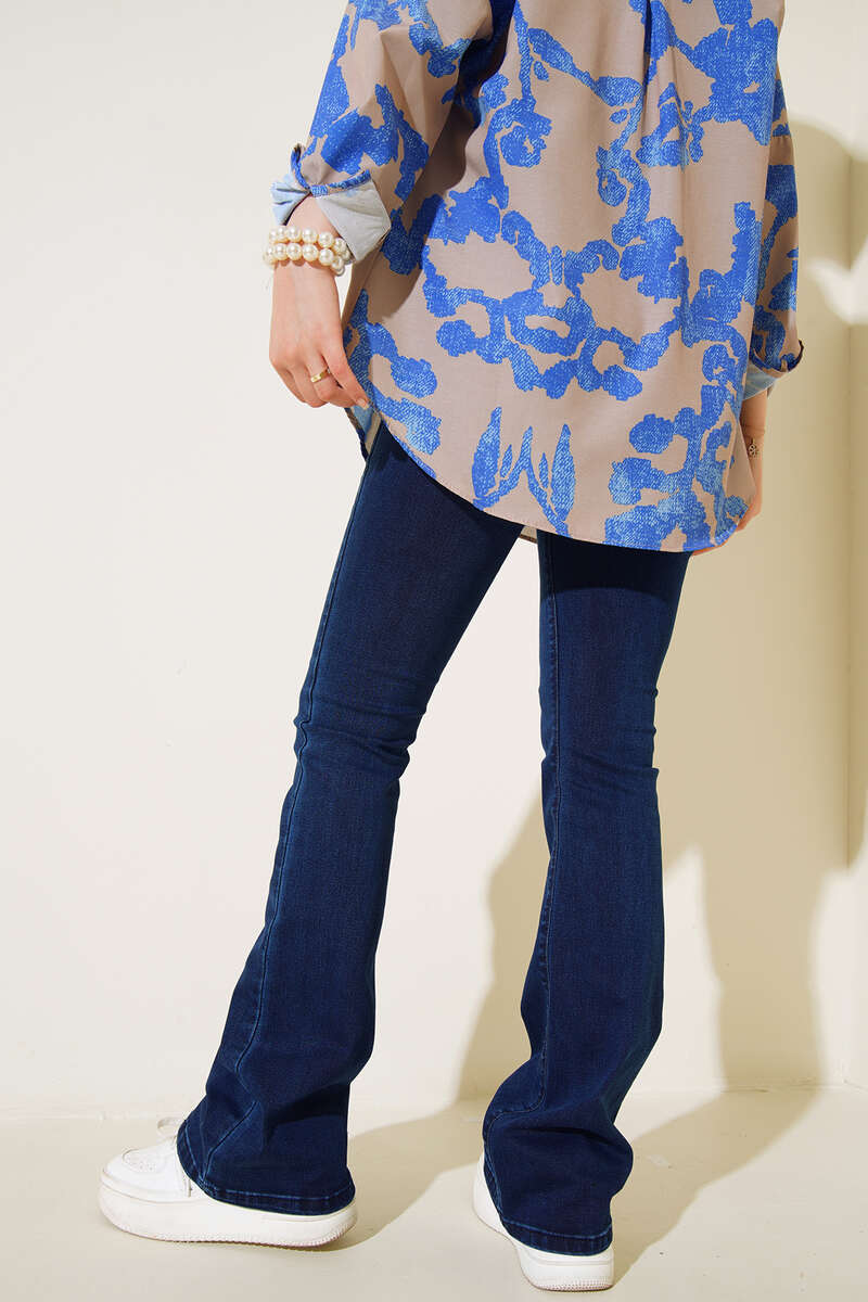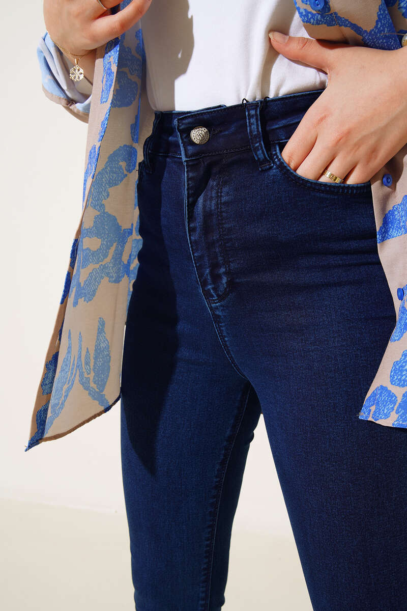 Yeni sezon model pantolonumuz ispanyol paçadır. Pantolonumuz yüksek beldir. Düğmeli ve fermuarlı model olan pantolonumuzun beş adet kemer köprüsü bulunmaktadır.