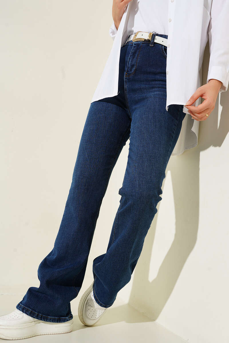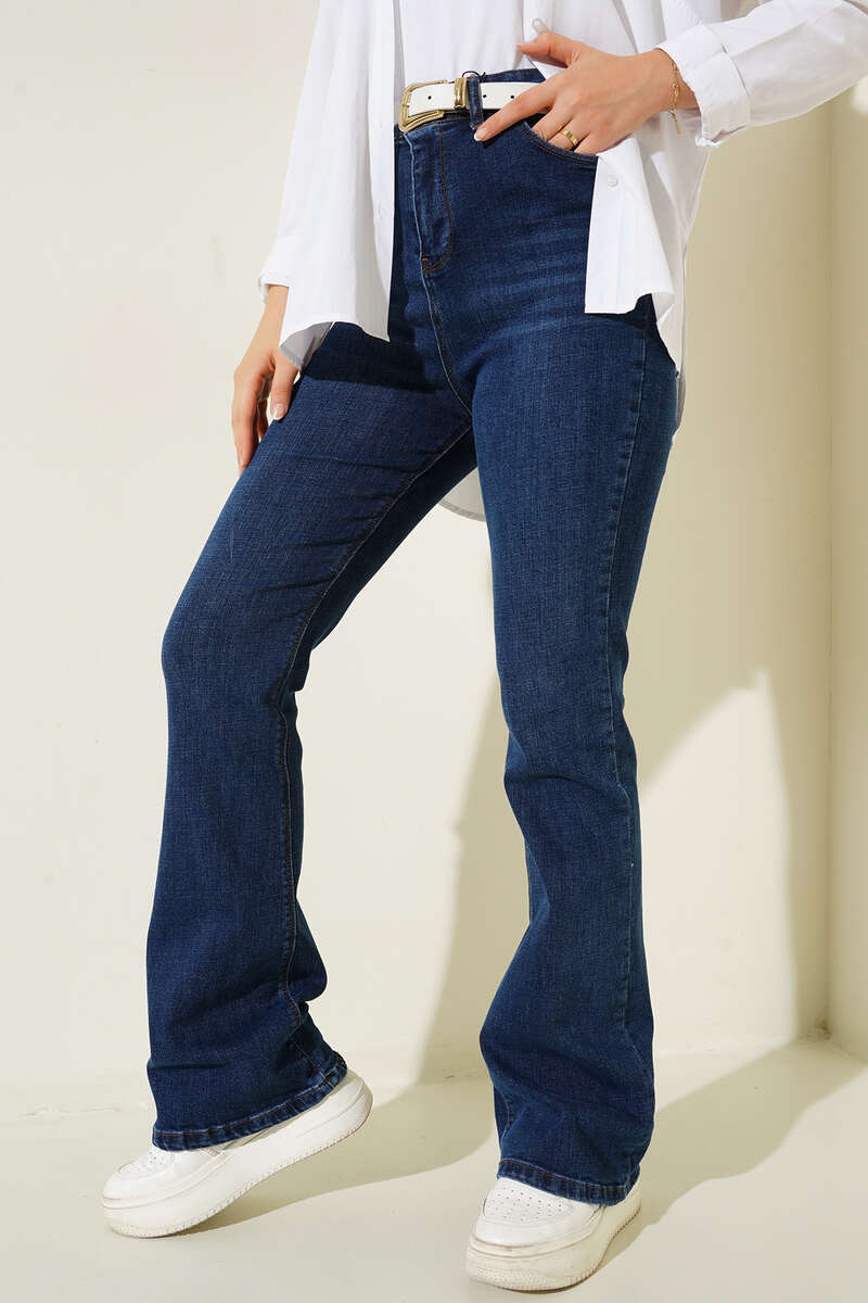 Yüksek Bel İspanyol Paça Pantolon Lacivert