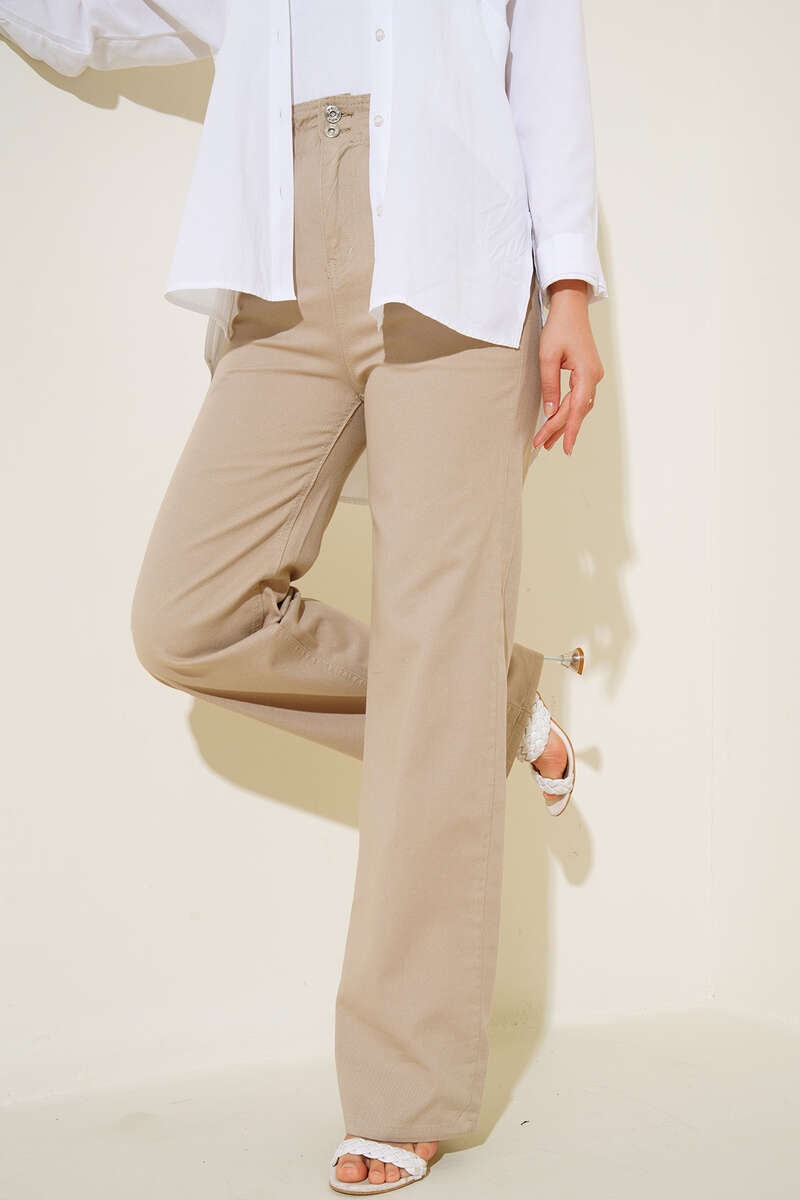 Yeni sezon pantolonumuz şık görünümüyle sizler için geldi. Ceplidir. Geniş paçalı oldukça rahat yapıdadır. Beli iki adet düğmeli ve üç adet kemer köprüsü bulunmaktadır. Her kıyafetinizle rahatlıkla kombin yapabilirsiniz.