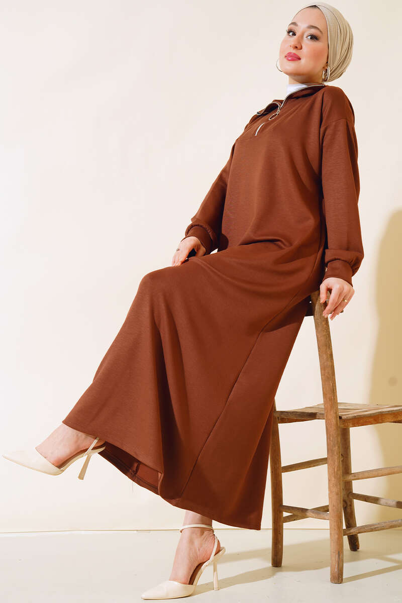 Yeni sezon elbisemiz sizlerle beraber. Yaka fermuarlı elbise modelimiz salaş modeldir. Dik yaka modeldir. Rahatlıkla giyeceğiniz elbisemizin renk seçenekleri mevcuttur.