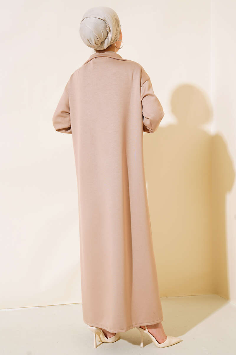 Yüksek Yaka Fermuarlı Elbise Latte