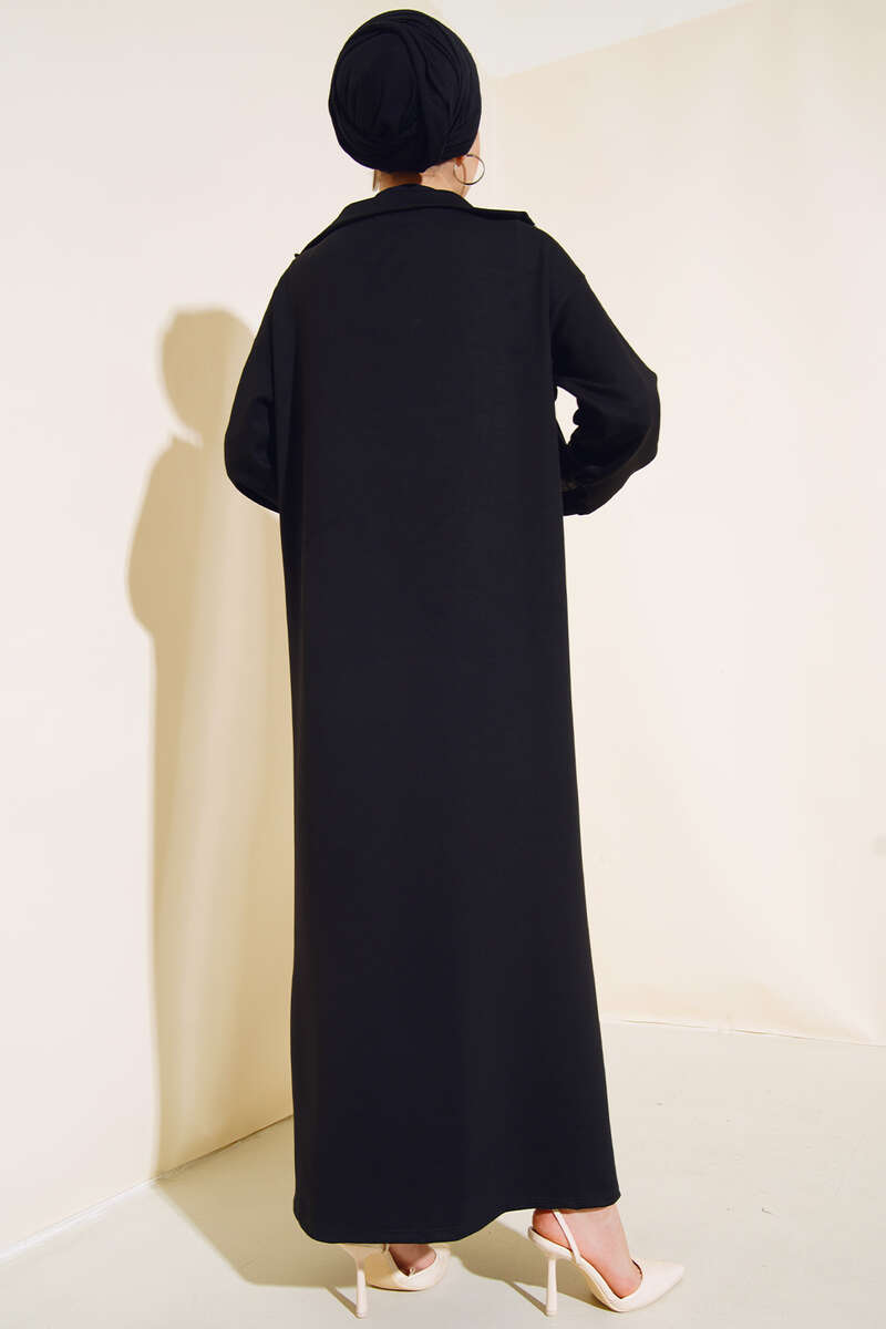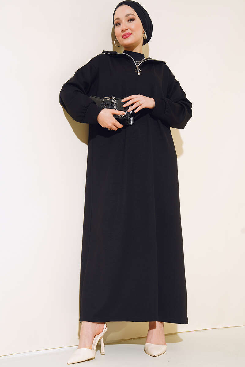 Yüksek Yaka Fermuarlı Elbise Siyah