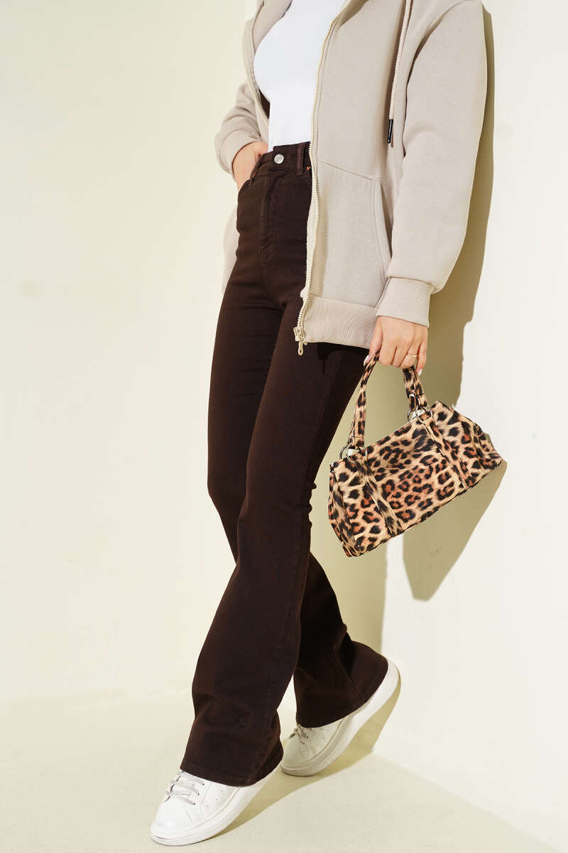 Yüksel Bel İspanyol Paça Pantolon Kahve