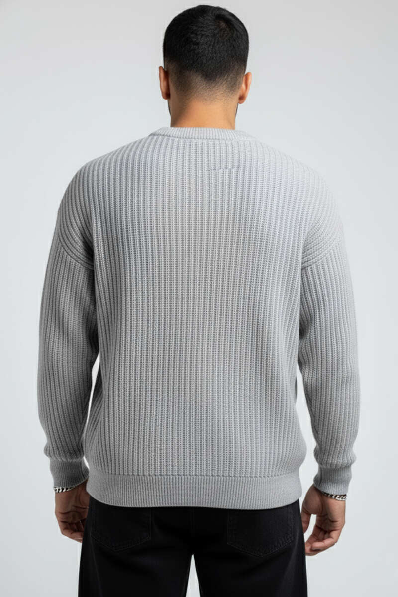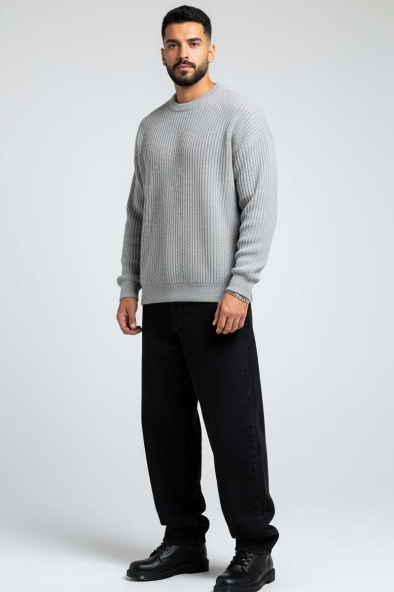 Pirinç Örgü Erkek Triko Kazak Gri