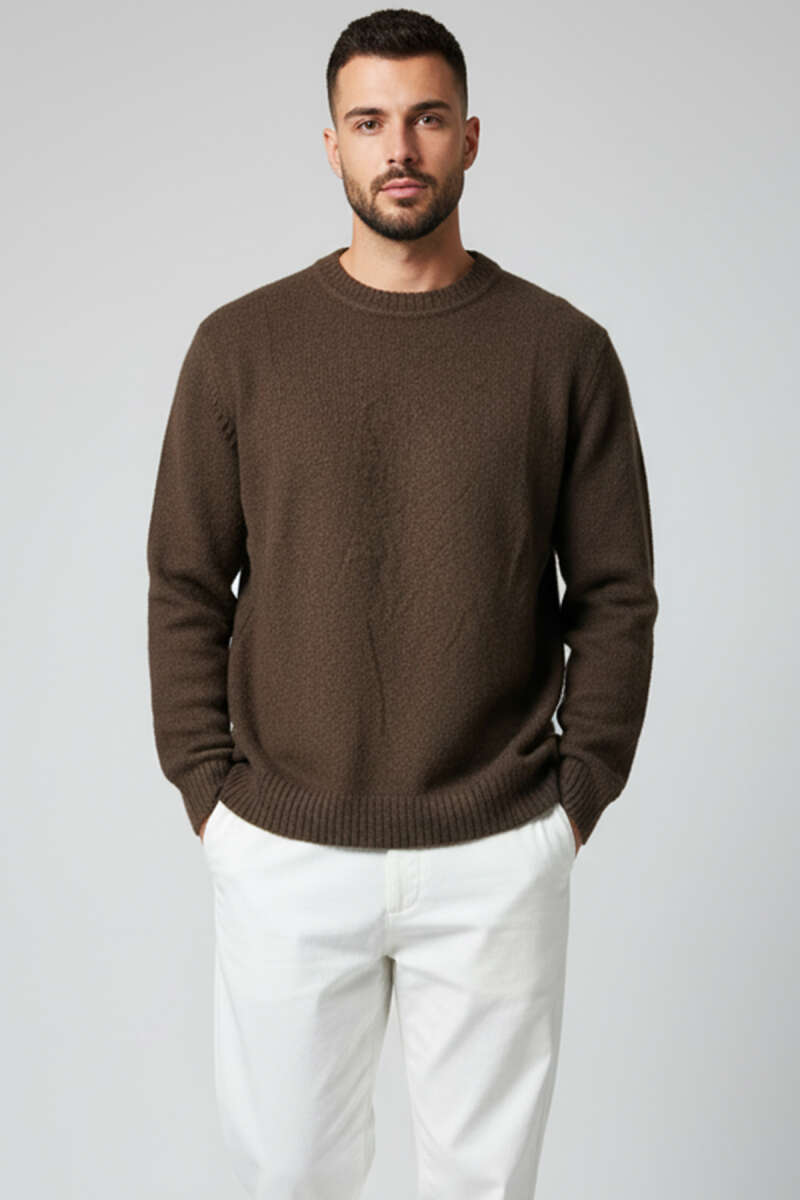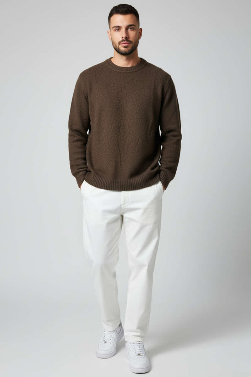 Waffle Polo Yaka Triko Erkek Kazak Ekru