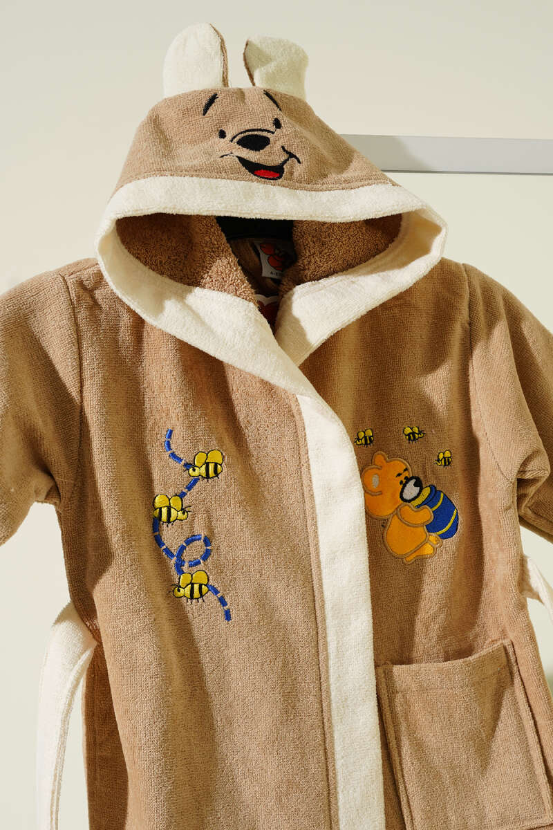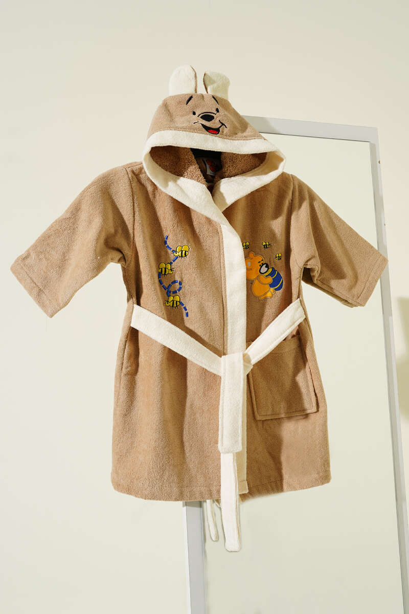 Yumuşak Dokulu Ayıcık Pooh Kapüşonlu Çocuk Bornozu Latte