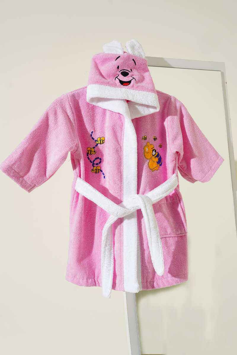 Yumuşak Dokulu Ayıcık Pooh Kapüşonlu Çocuk Bornozu Pembe
