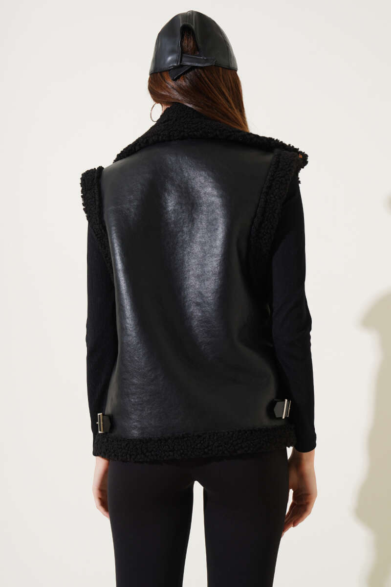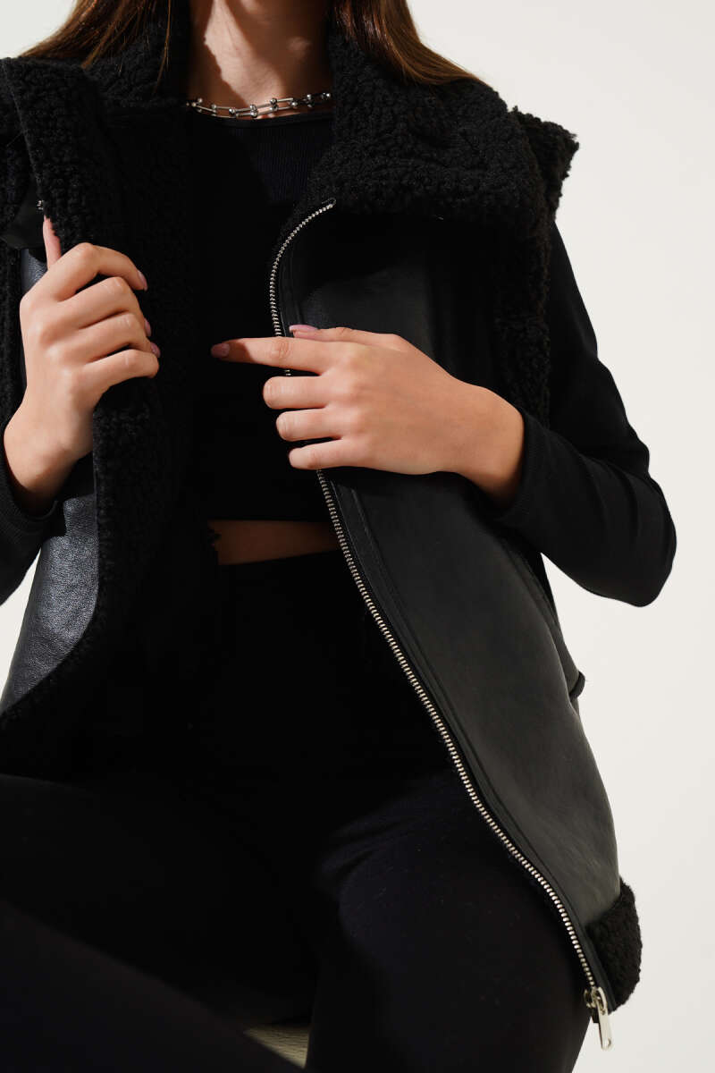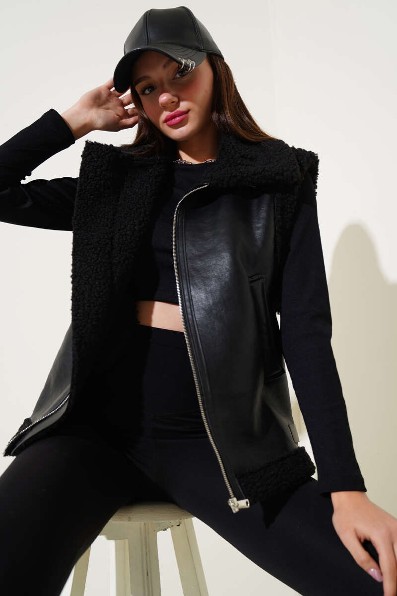 Çift Taraflı Fermuarlı Şişme Yelek Siyah Taş