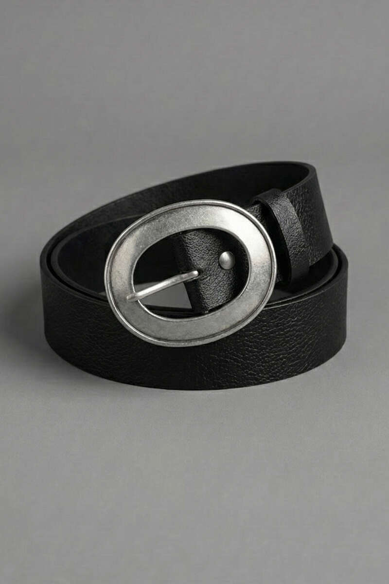 Yuvarlak Bakır Görünüm Tokalı Kemer Siyah