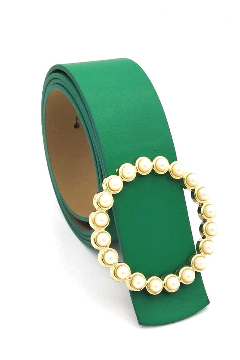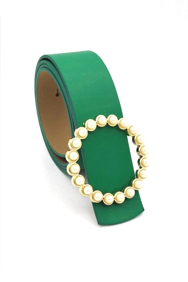 Yuvarlak İnci Tokalı Yeşil Kemer