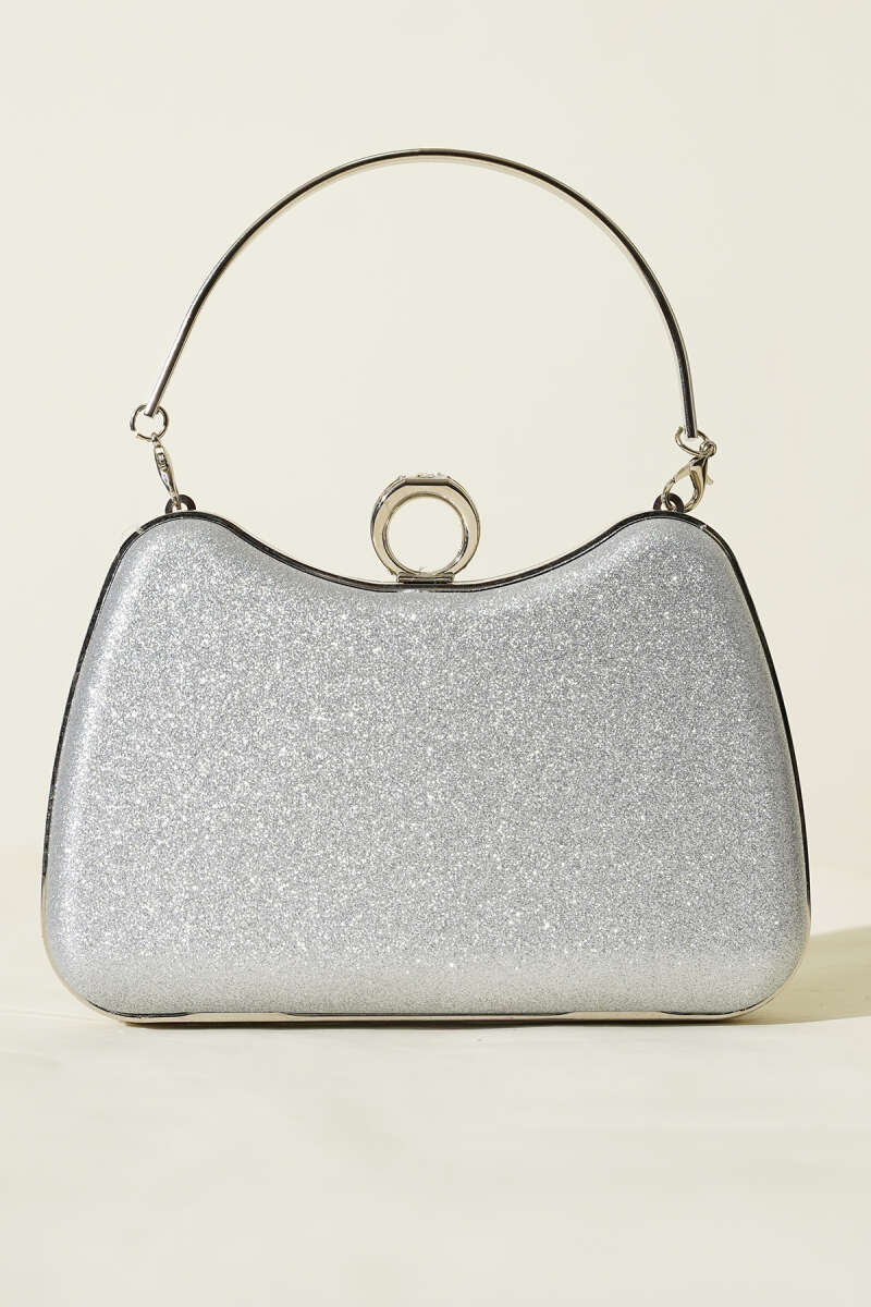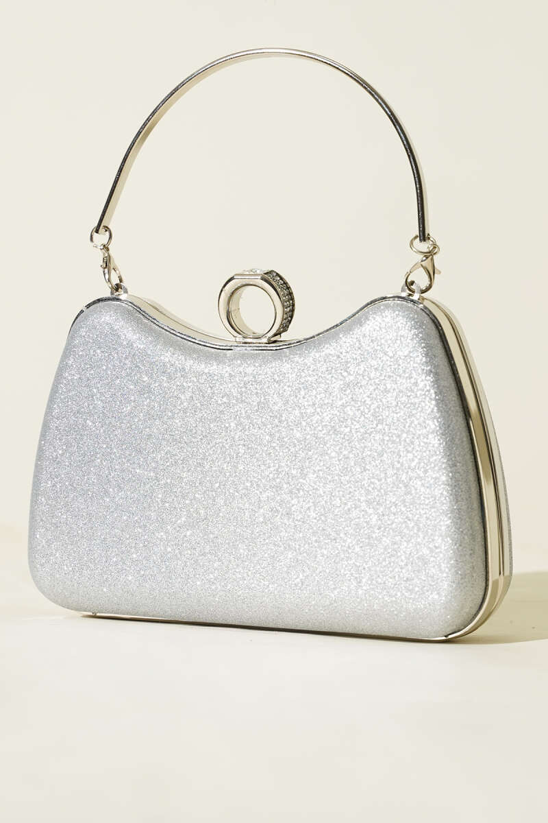 Dikdörtgen Kulplu Abiye Çanta Gümüş