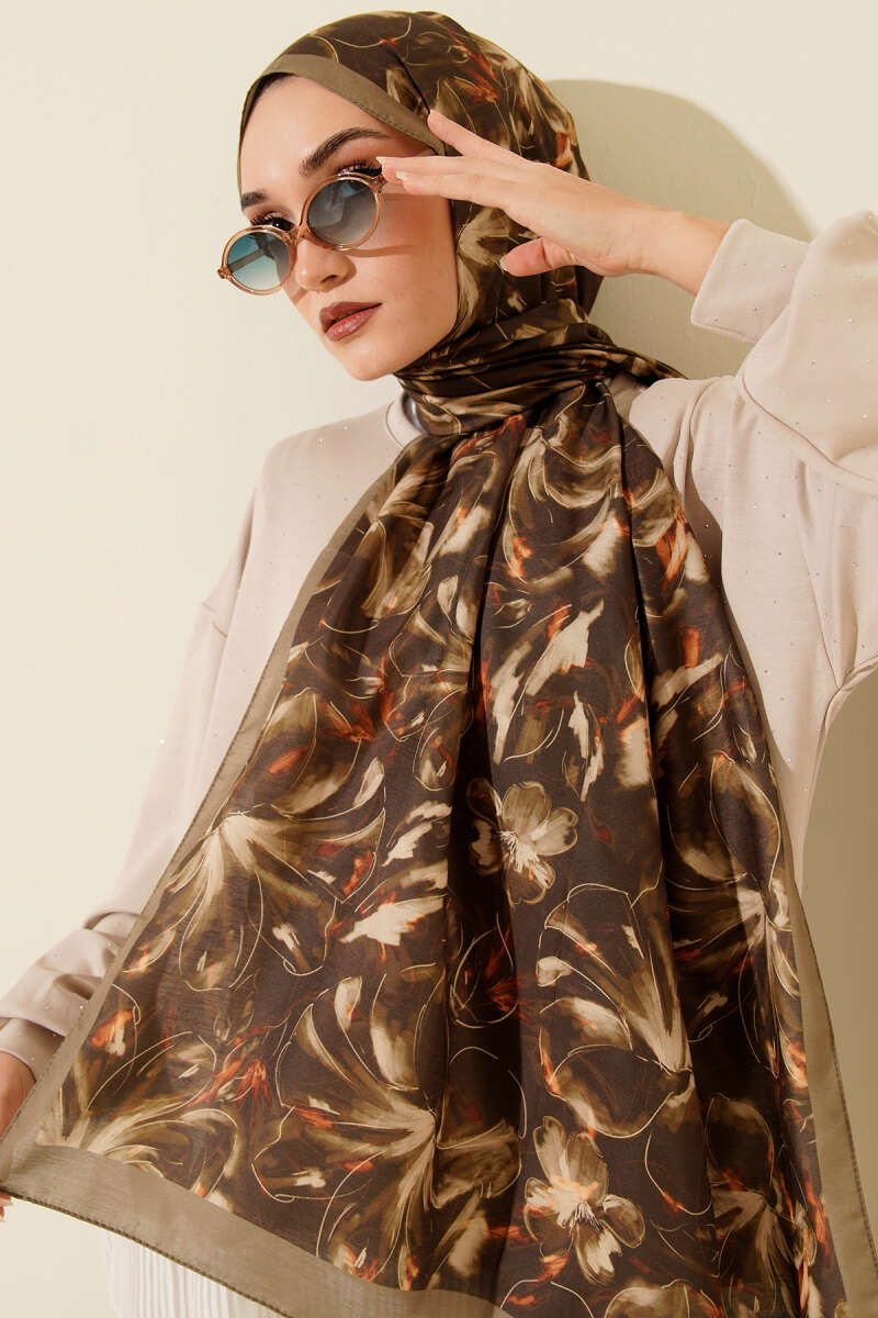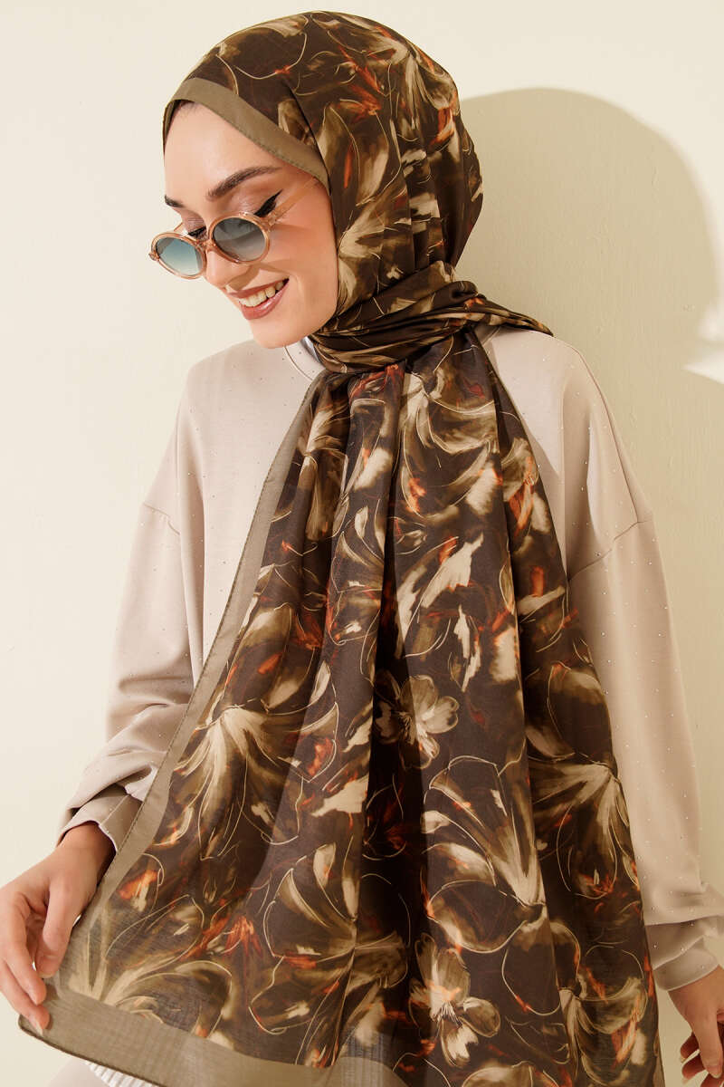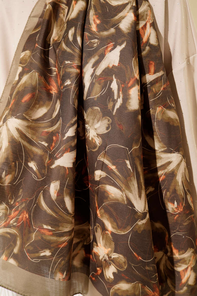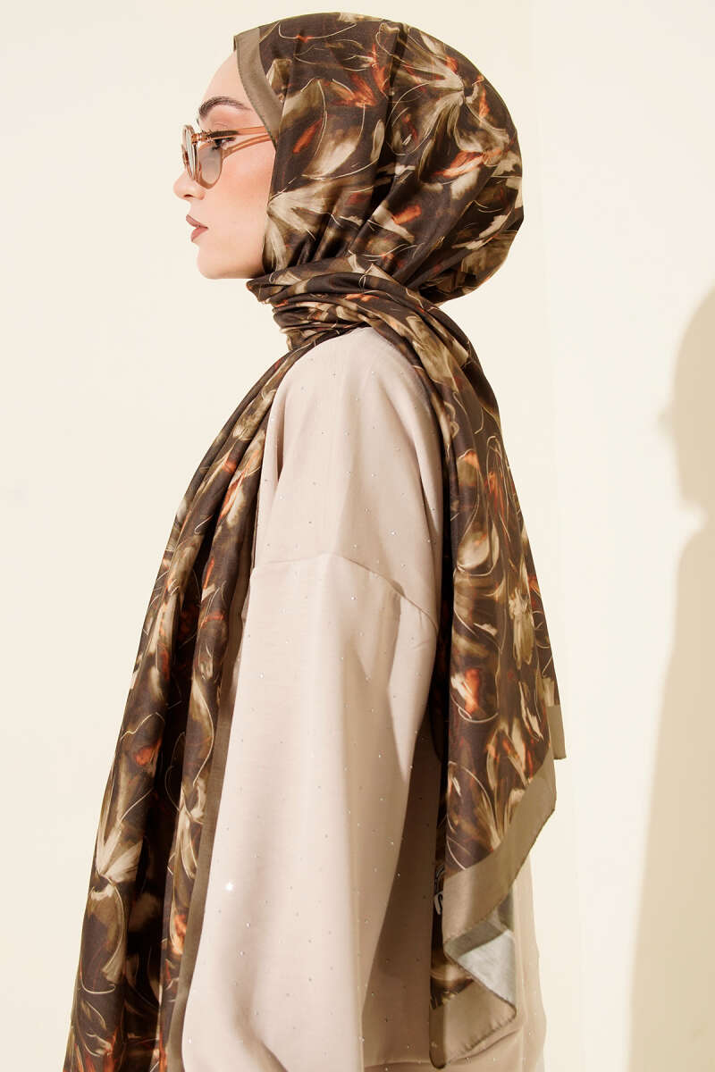 120 cm Sarmal Ebruli Eşarp Kahve