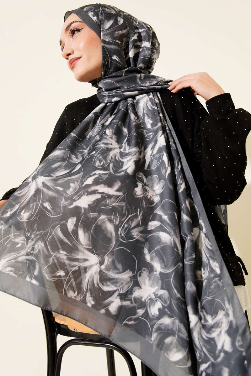 120 cm Sarmal Ebruli Eşarp Antrasit