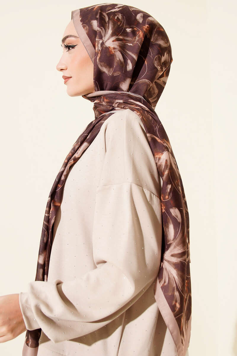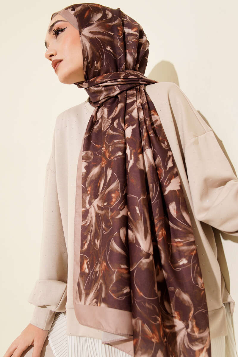 120 cm Sarmal Ebruli Eşarp Kum Bej