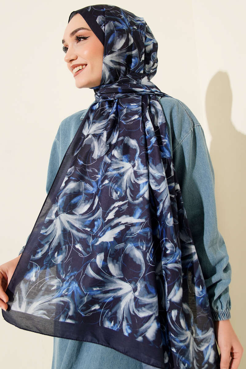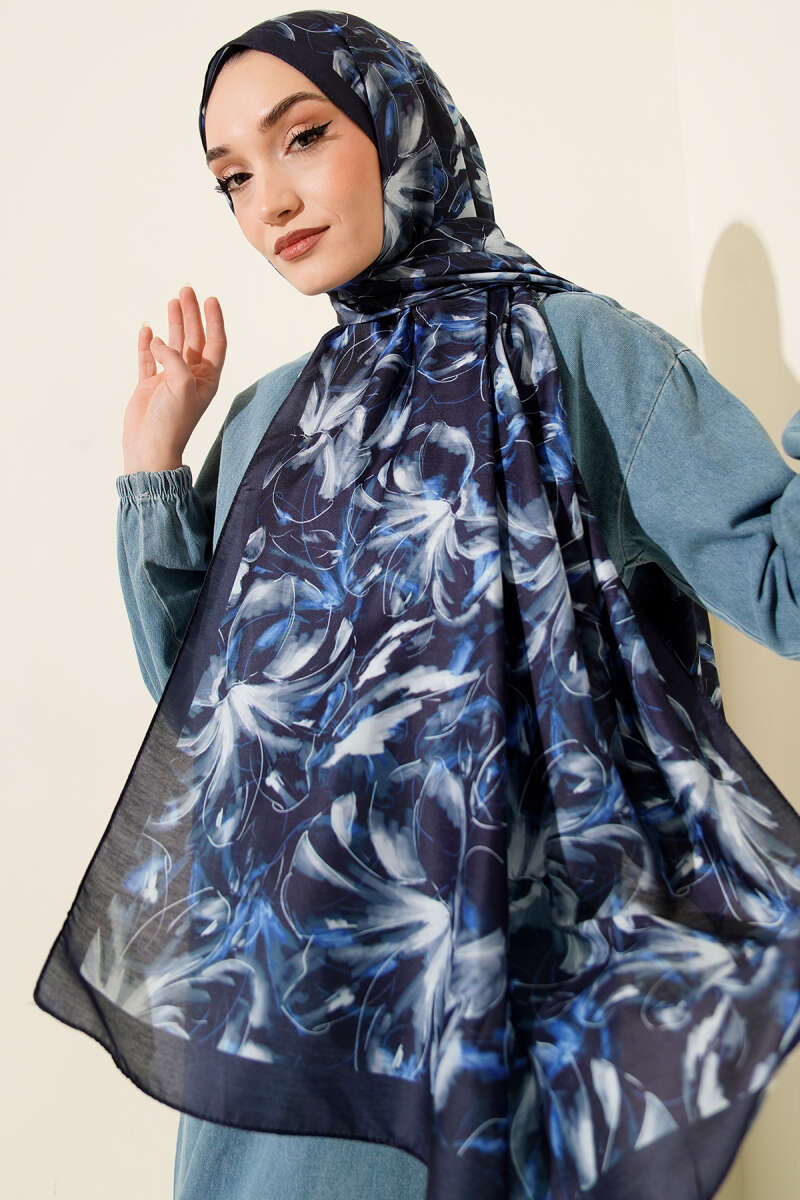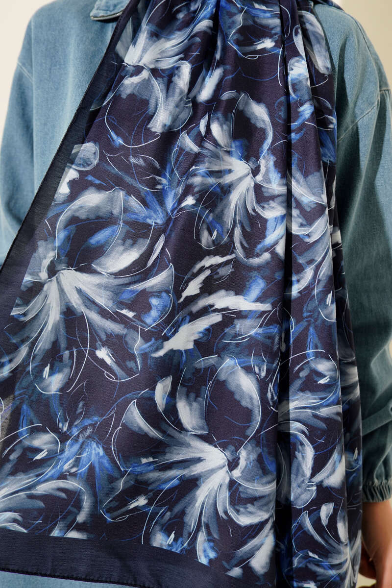 120 cm Sarmal Ebruli Eşarp Lacivert