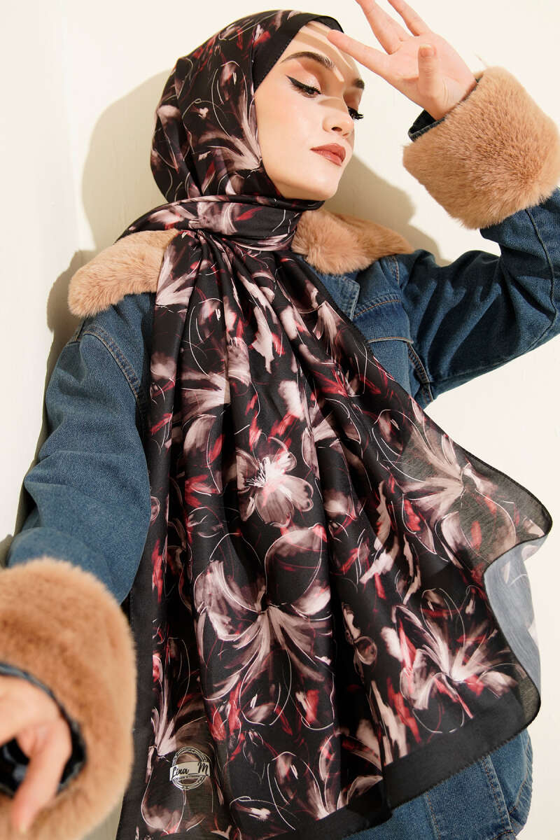 Mini Çiçek Desenli Eşarp Siyah Füme