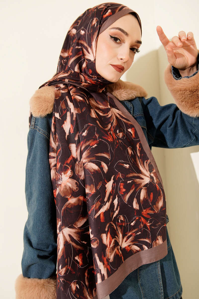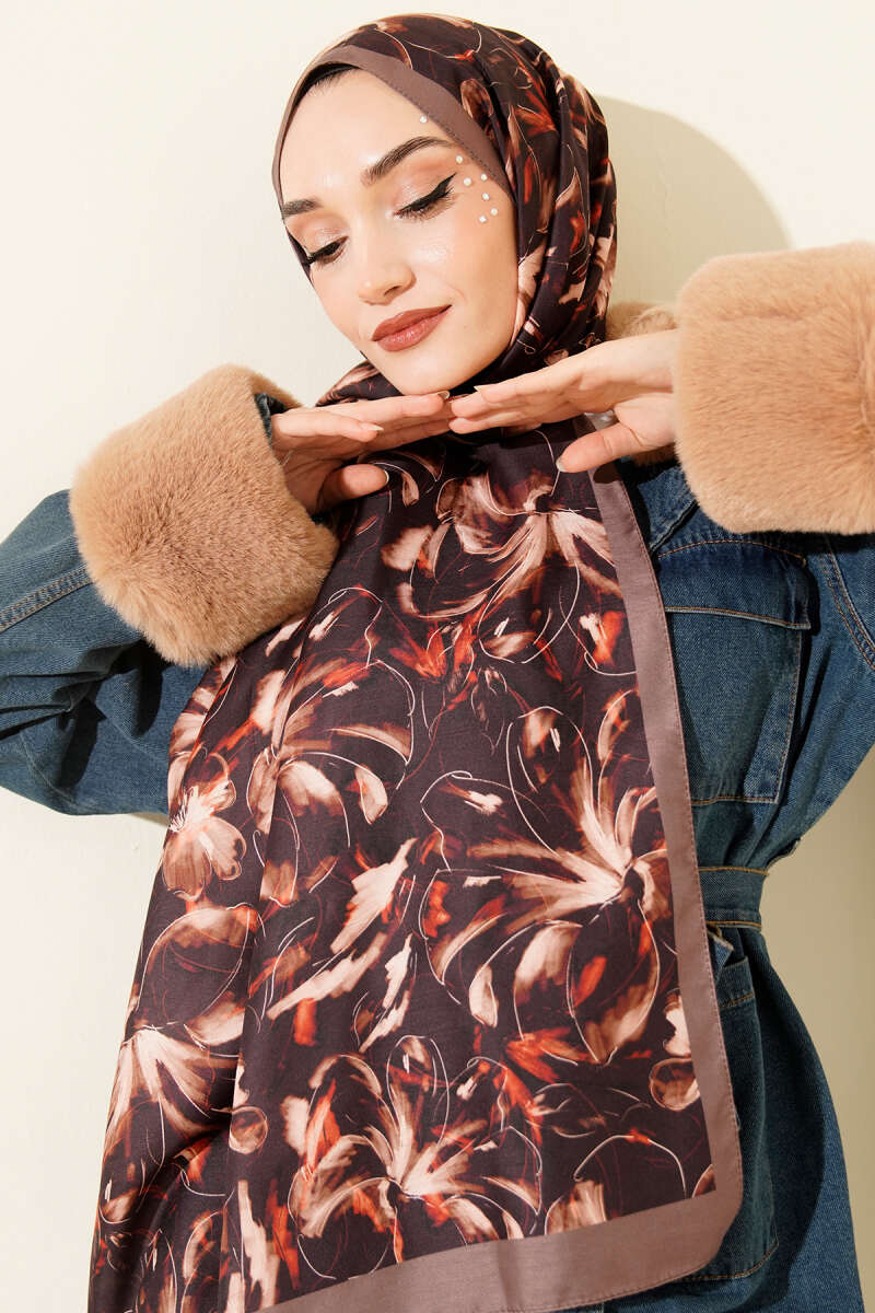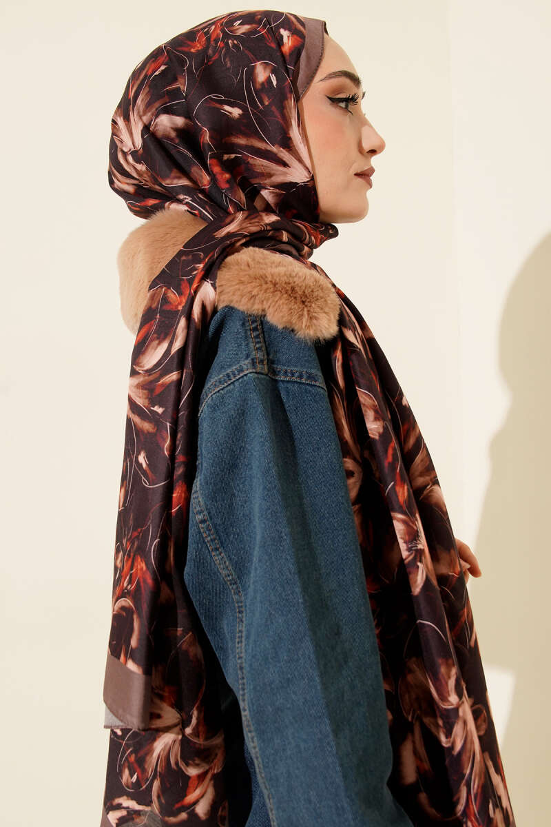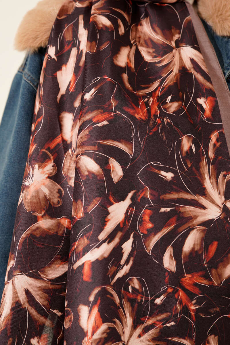 Zambak Desen Soft Şal Vizon