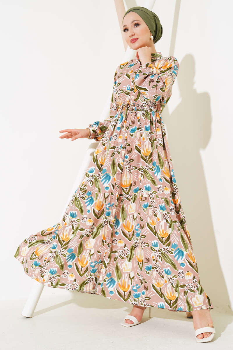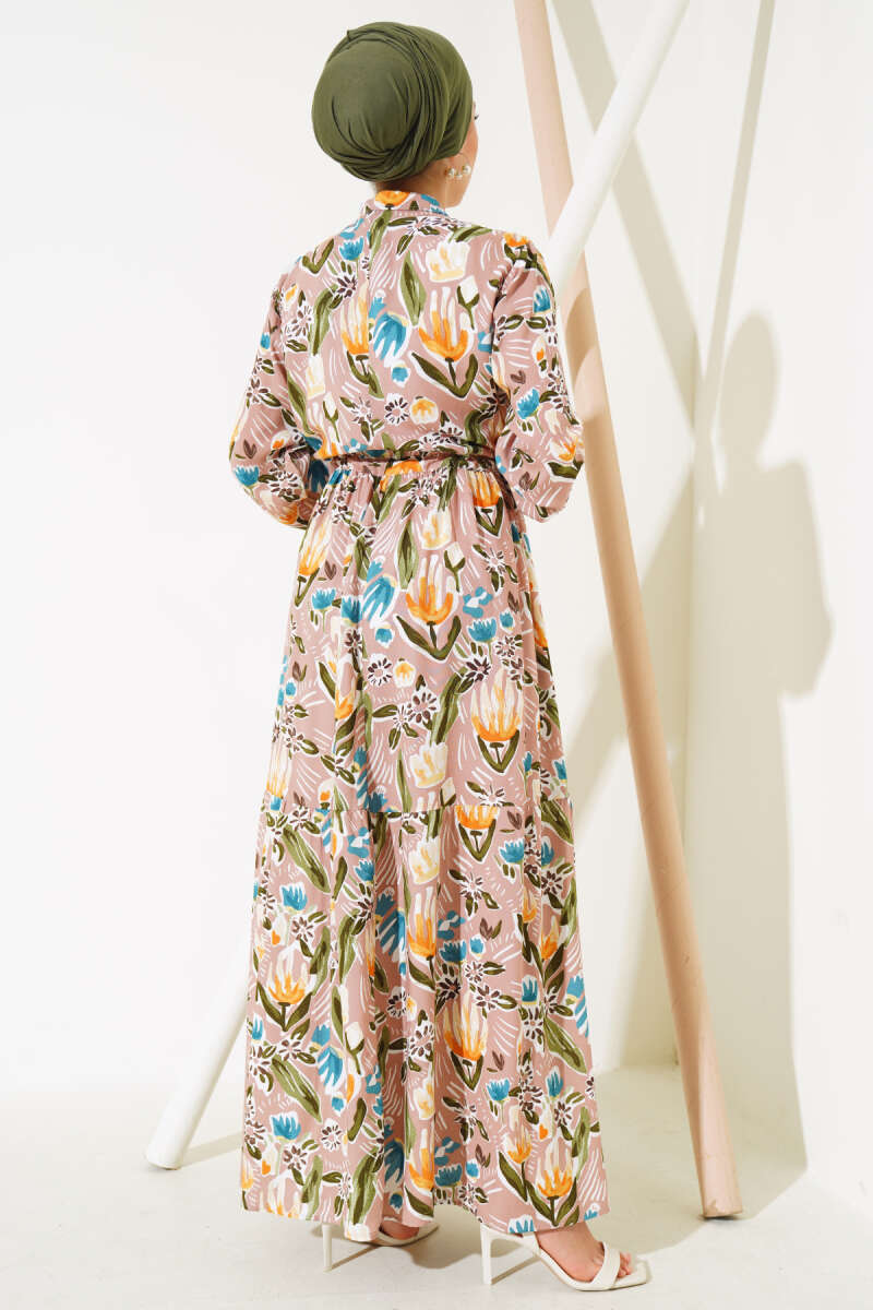 Paisley Desen Bel Lastikli Elbise Lacivert
