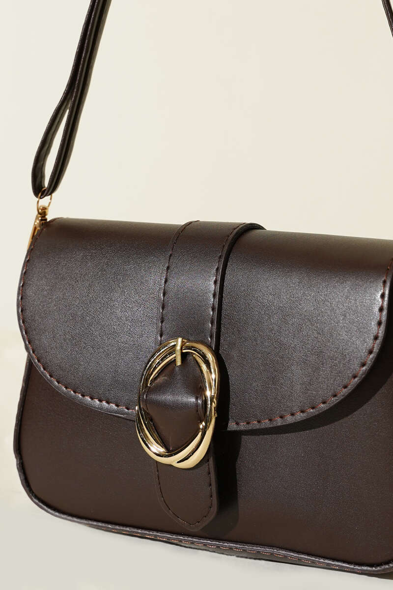 Zarif Tasarımlı Kapaklı Çanta Kahve