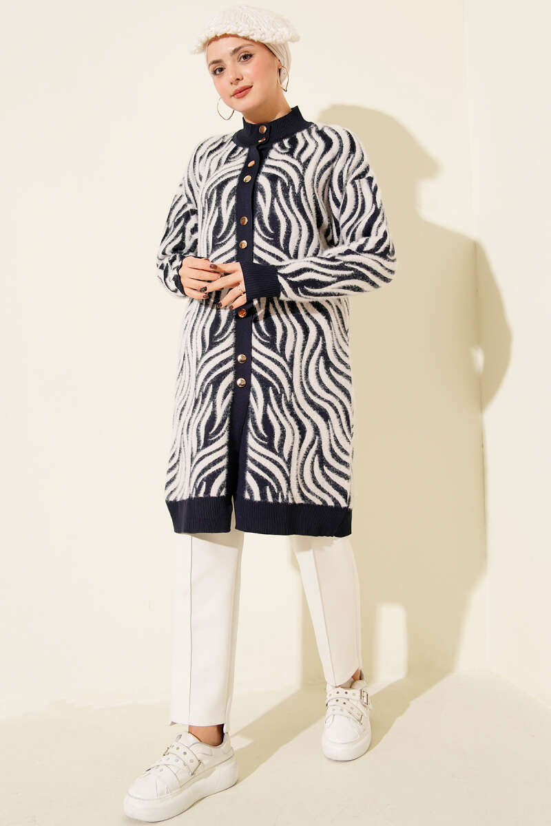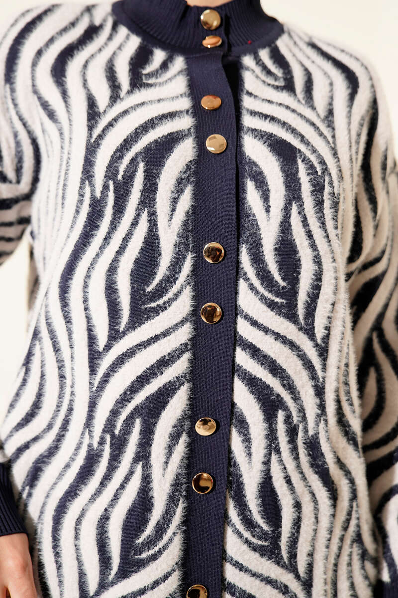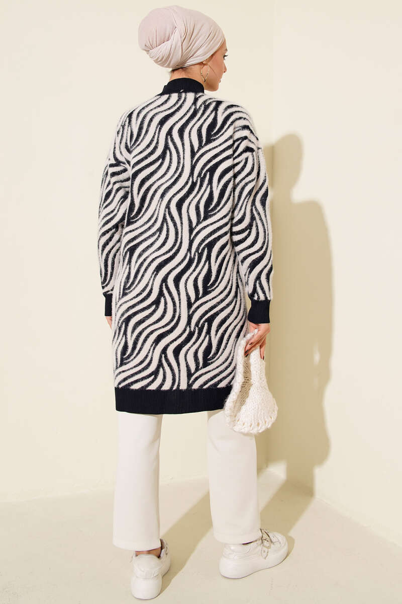 Zebra Desen Angora Detaylı Triko Hırka Siyah