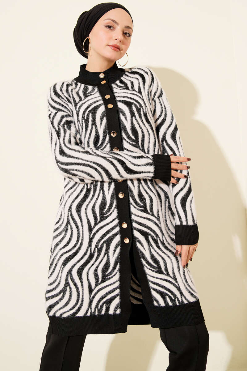 Zebra Desen Angora Detaylı Triko Hırka Kahve