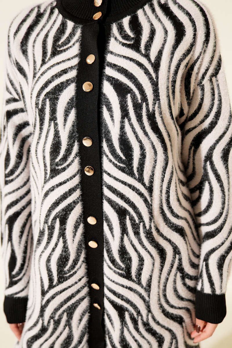 Zigzag Desenli Düğmeli Merserize Hırka Siyah