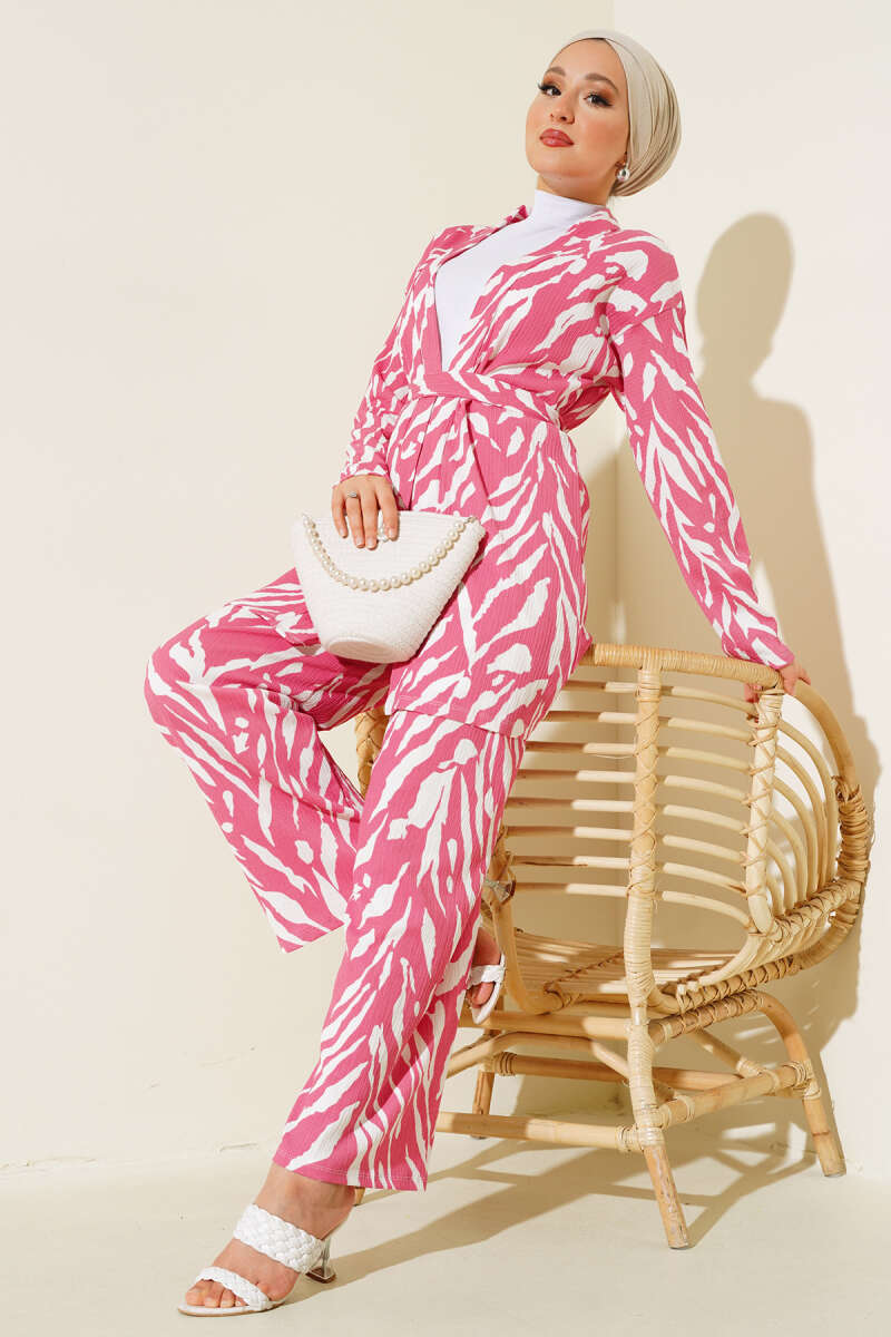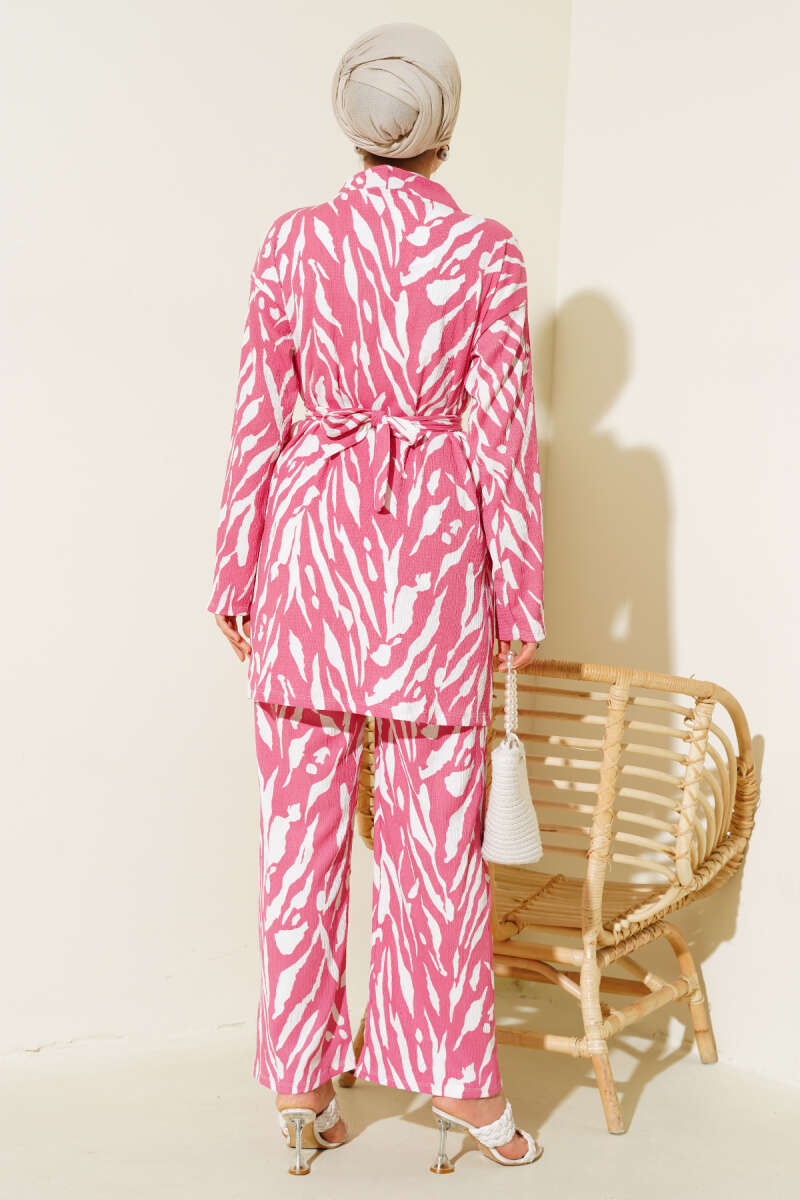 Tek Düğmeli Kuşaklı Dabıl İkili Takım Acı Kahve