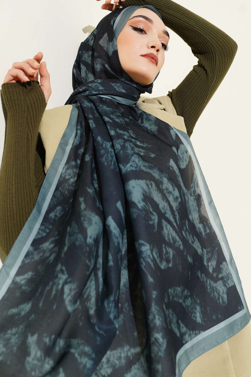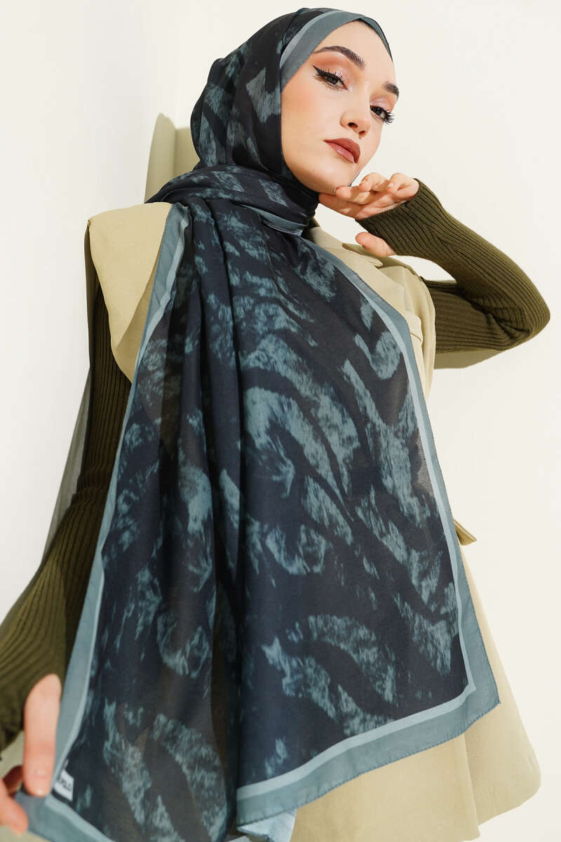 Bel Lastikli Desenli Mevlana Elbise Siyah