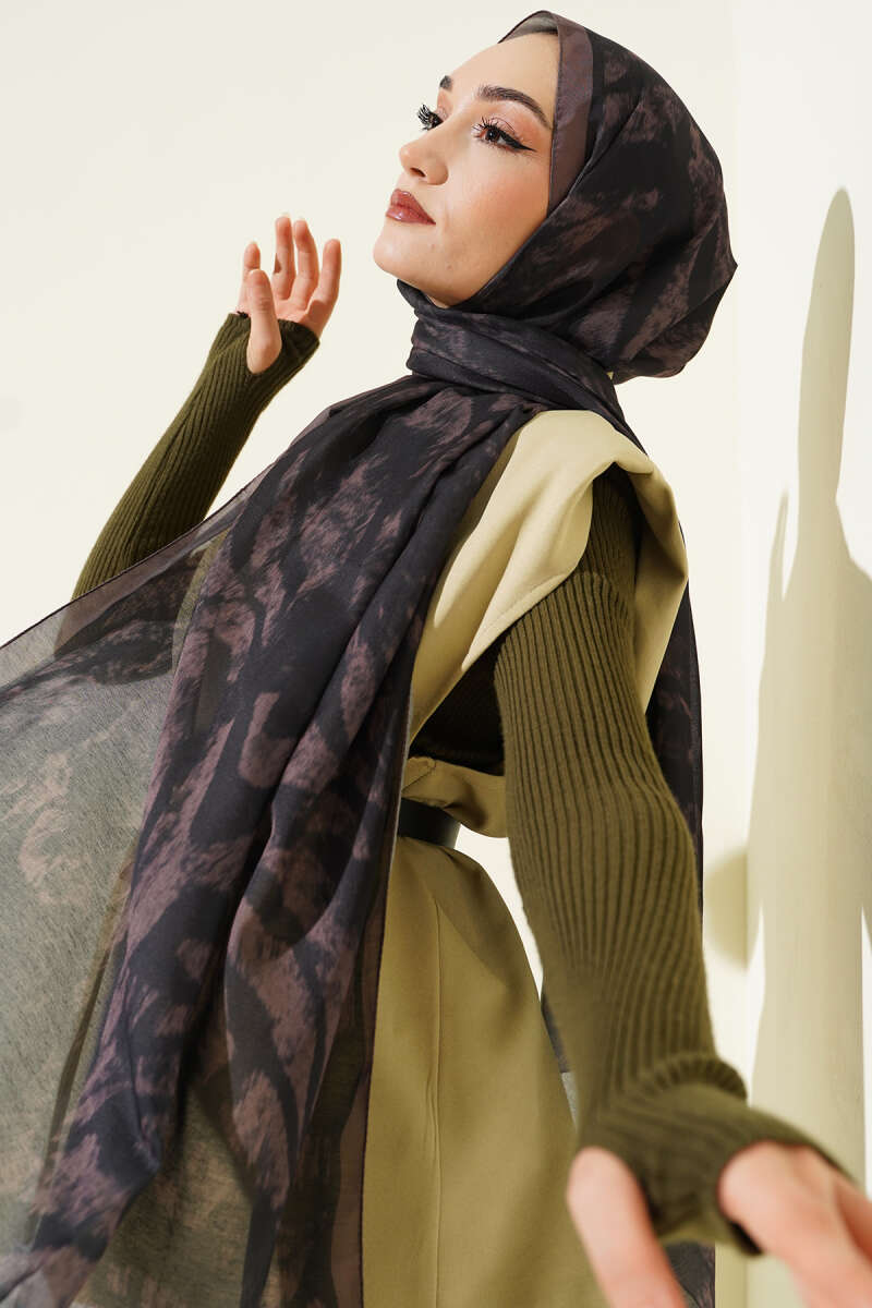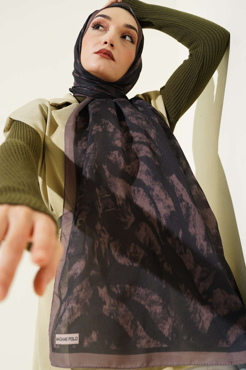 Bel Lastikli Desenli Mevlana Elbise Siyah