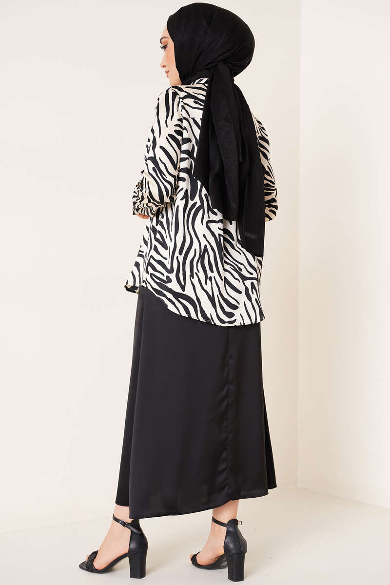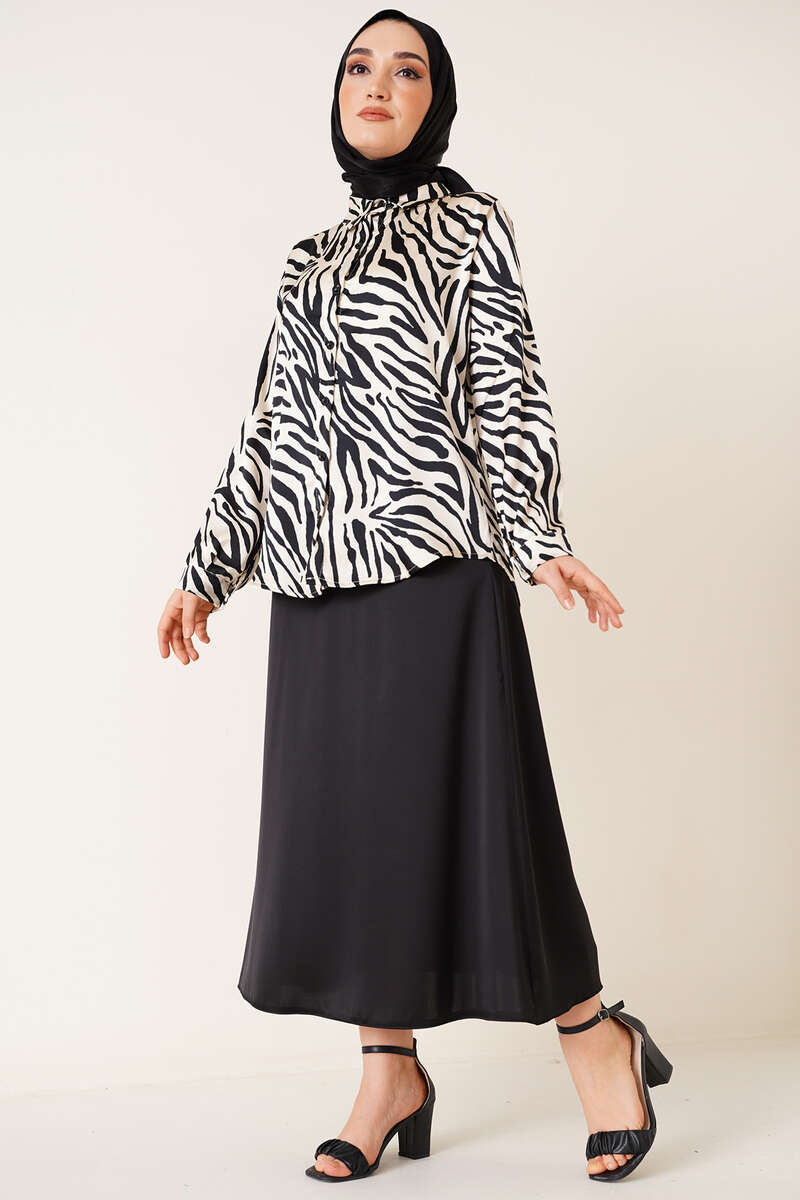 Yeni sezon gömleğimiz dikkat çeken deseniyle sizlerle buluştu. Gömleğimiz zebra desenlidir. Saten kumaştan yapılmıştır. Önü ve bilekleri düğmelidir. Oldukça rahattır. Her kıyafetinizle rahatlıkla kombinleyebilirsiniz.