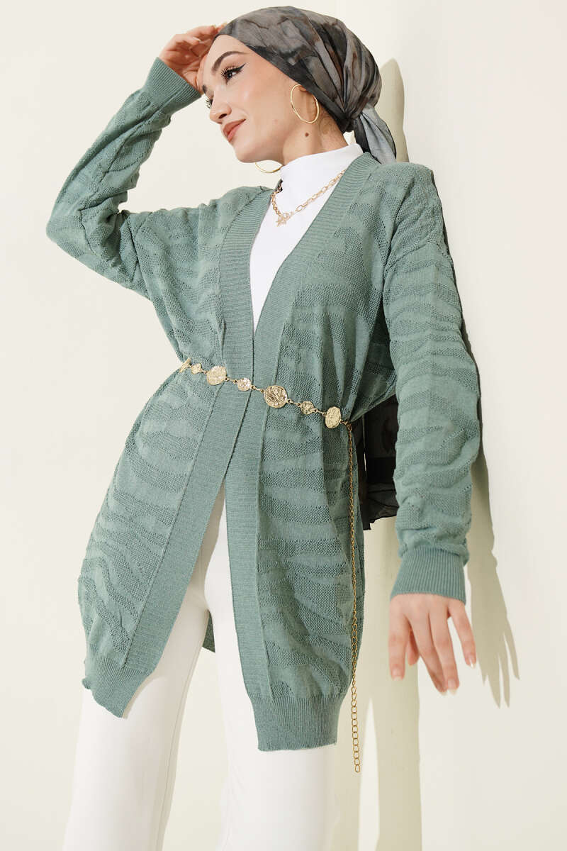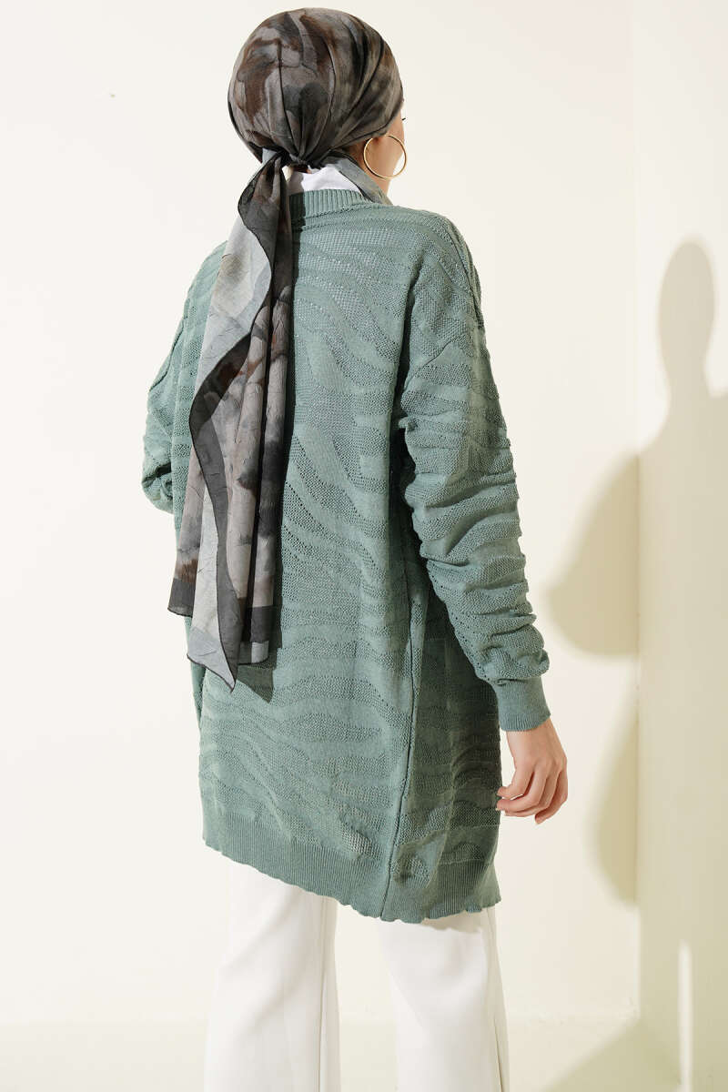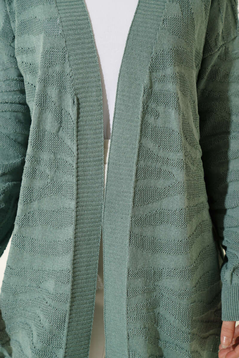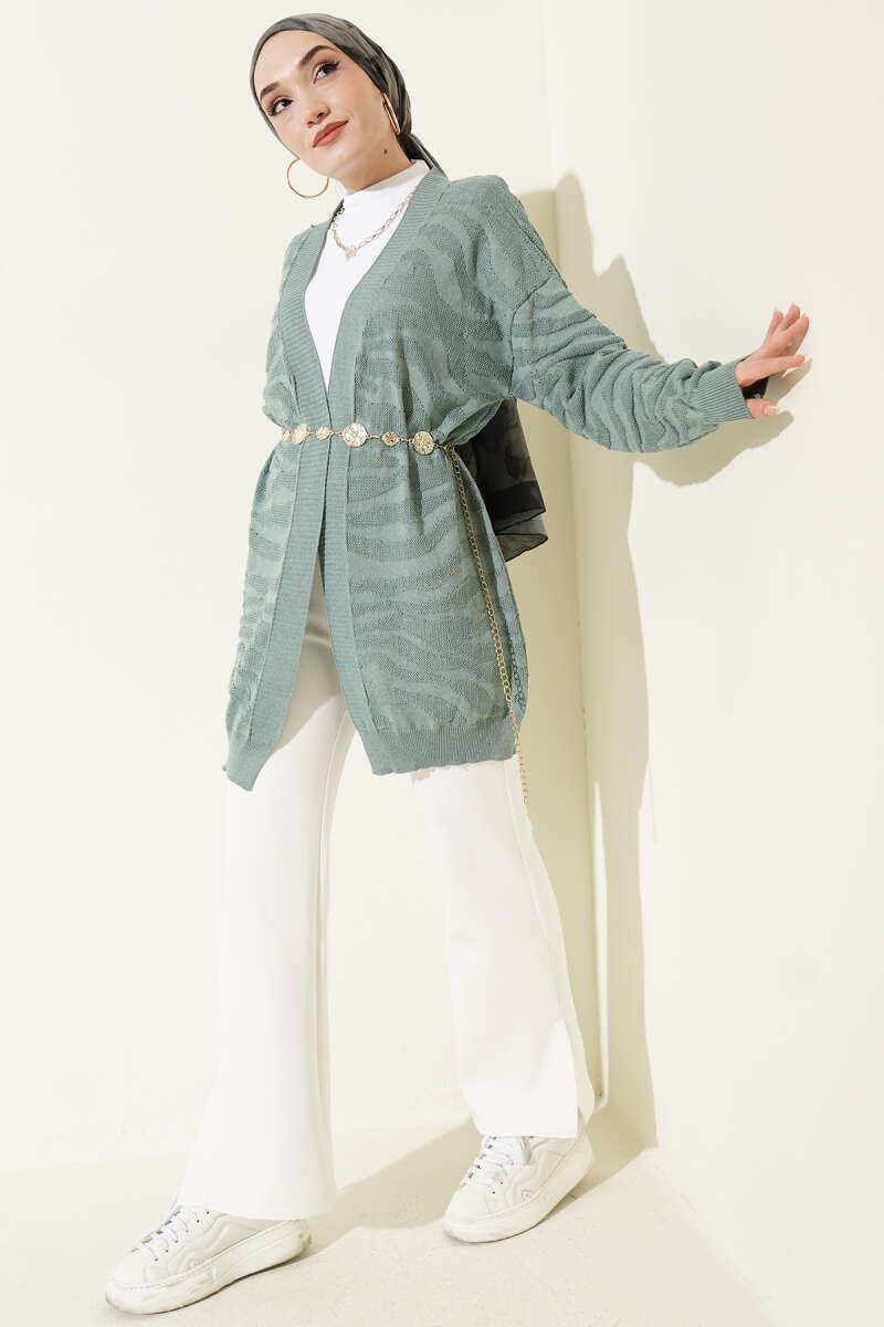 Zebra Desenli Triko Hırka Çağla Yeşili