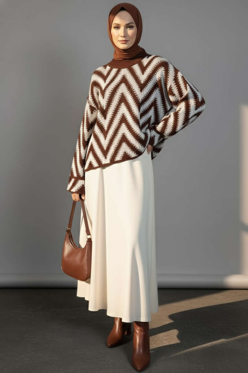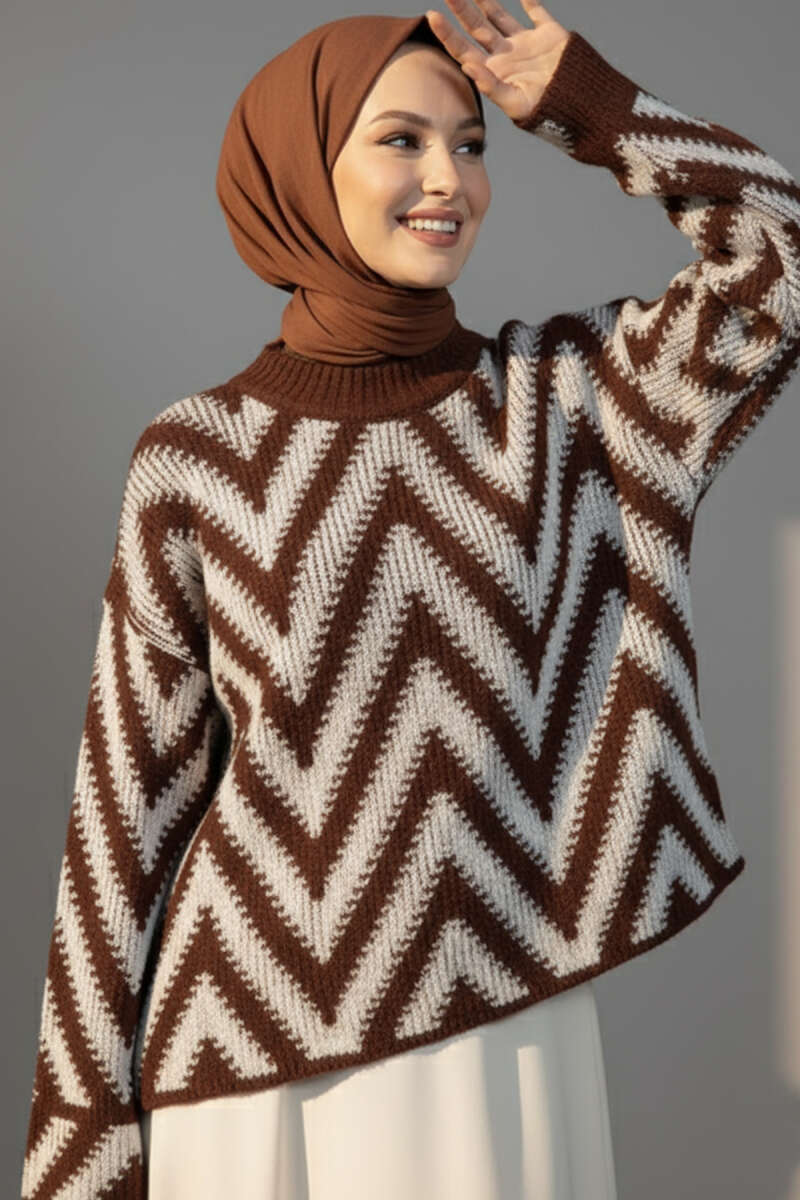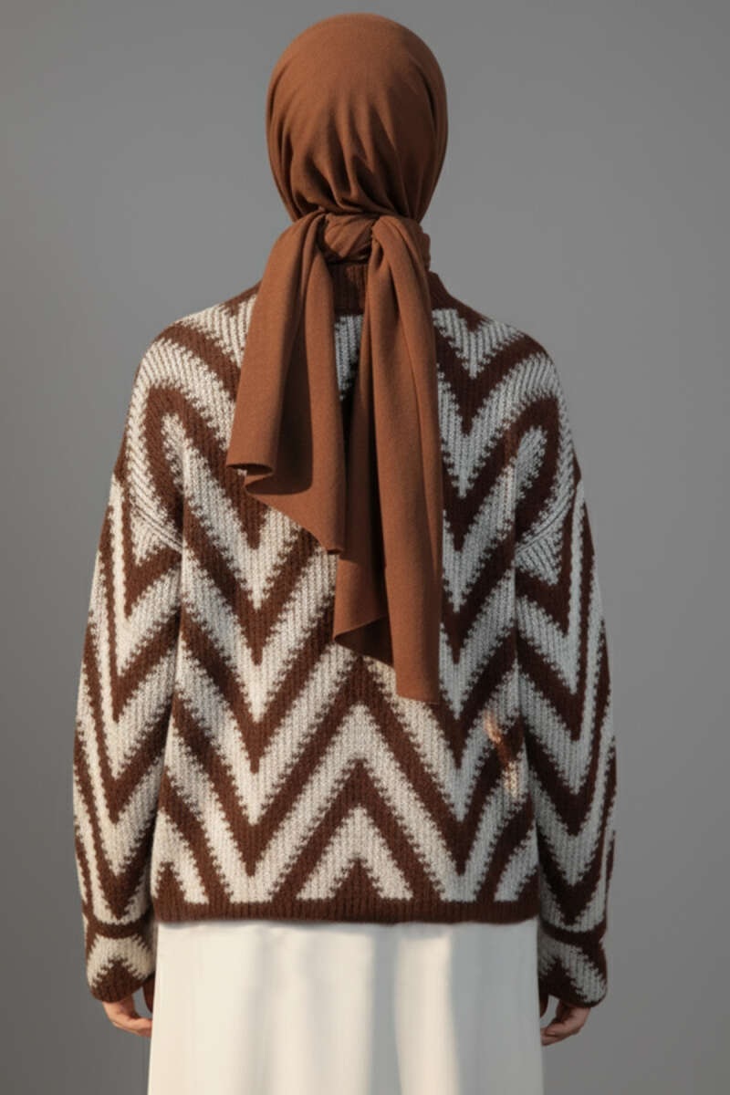 Serpme Taşlı Çizgili Sakallı Kazak Kahve
