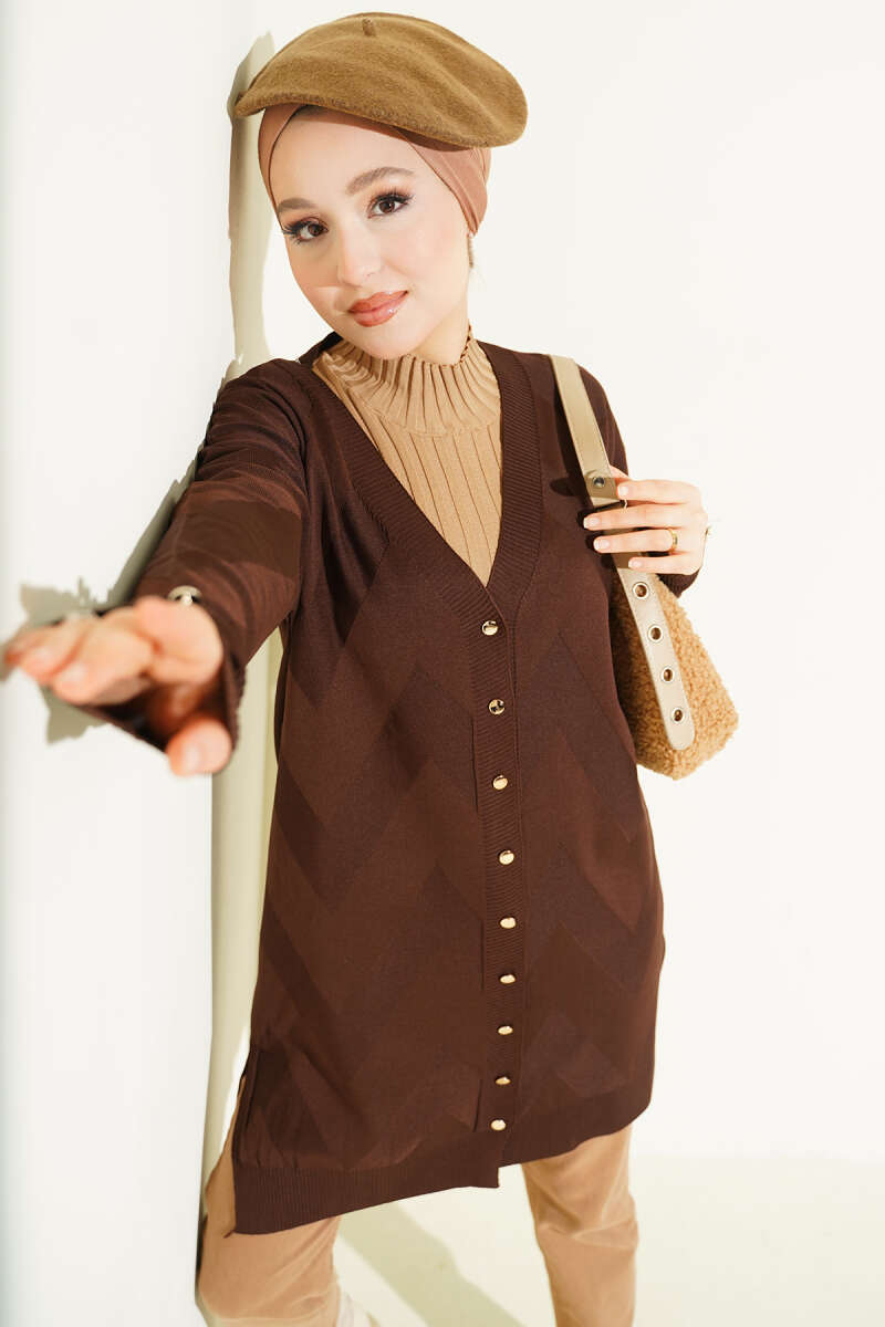 Zigzag Desenli Düğmeli Merserize Hırka Taş