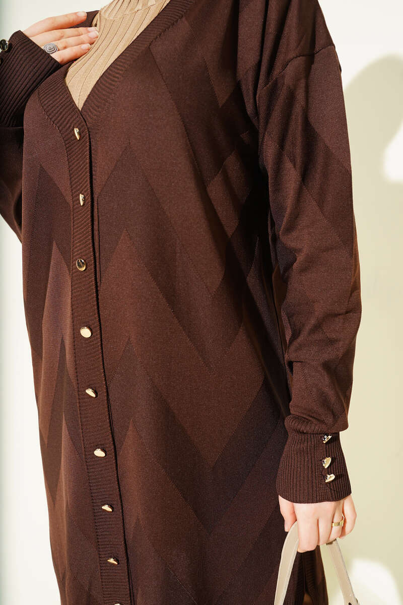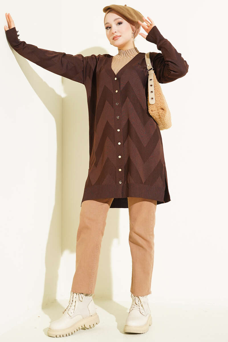 Zigzag Desenli Düğmeli Merserize Hırka Mürdüm