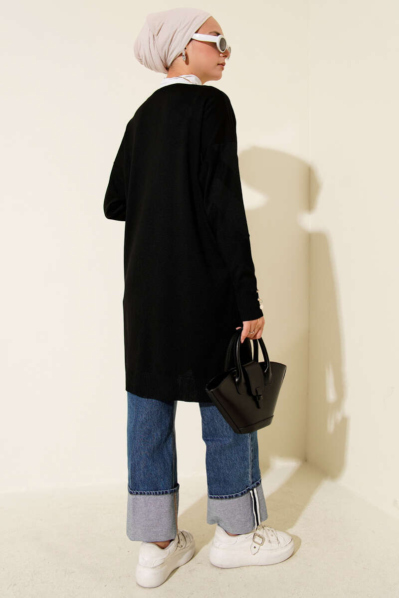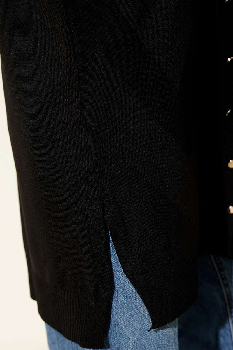 Yan Yırtmaçlı Yumoş Uzun Triko Tunik Siyah