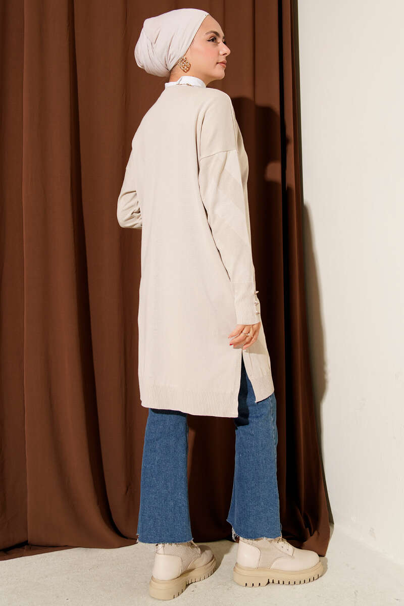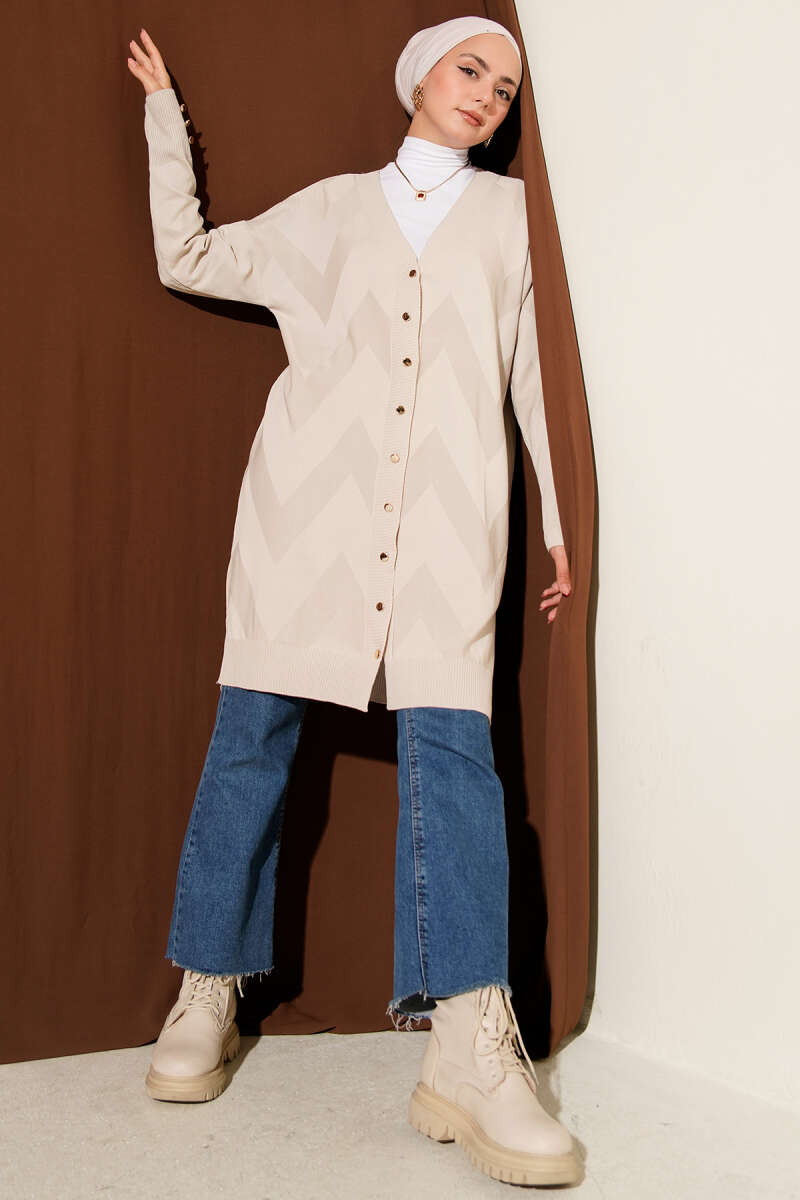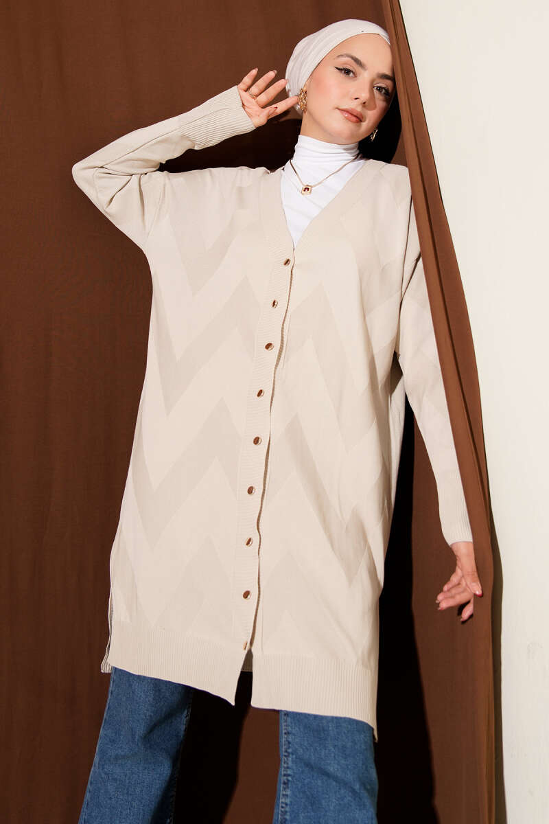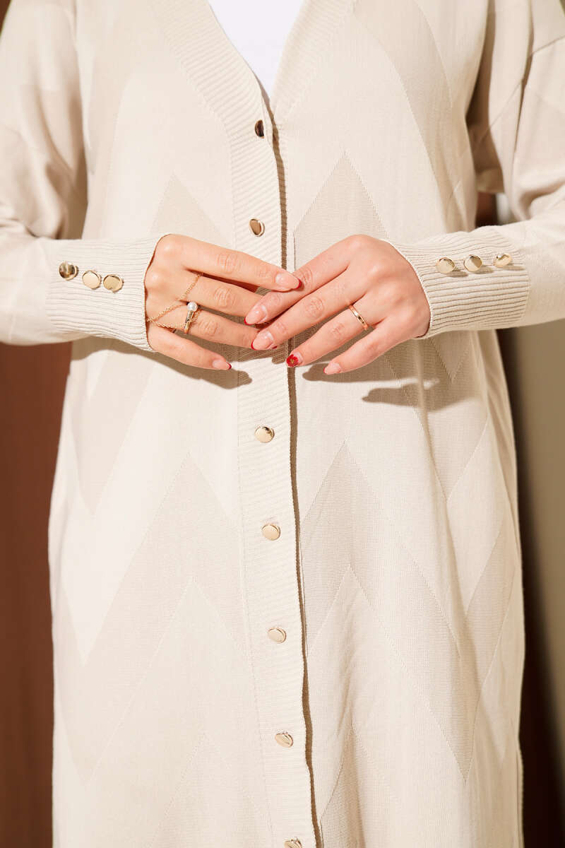 Sarmal Desen Düğmeli Kısa Triko Hırka Bej