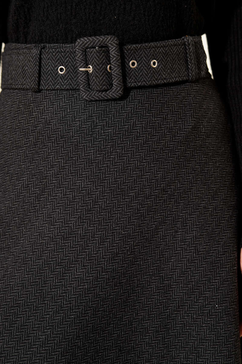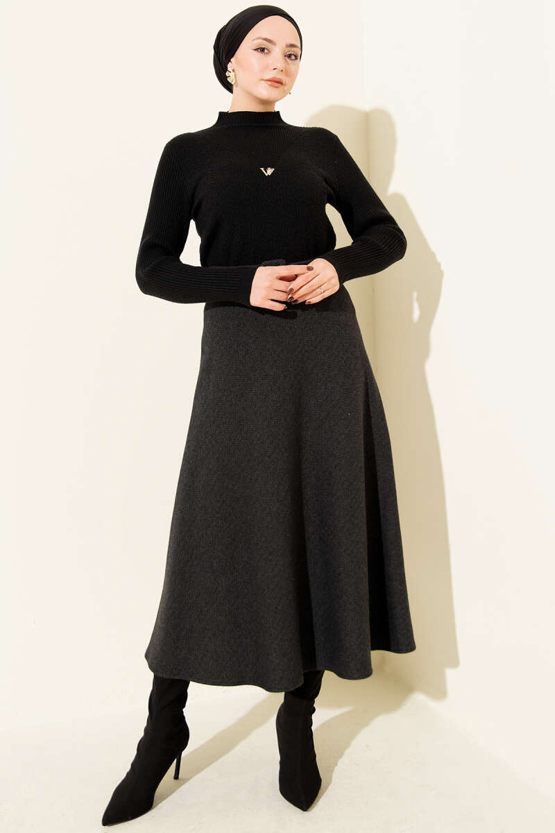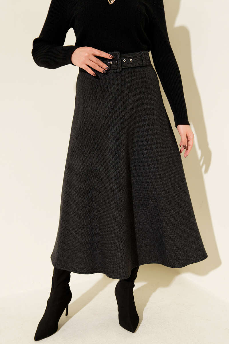 Kare Desen Kemerli Kaşe Etek Antrasit