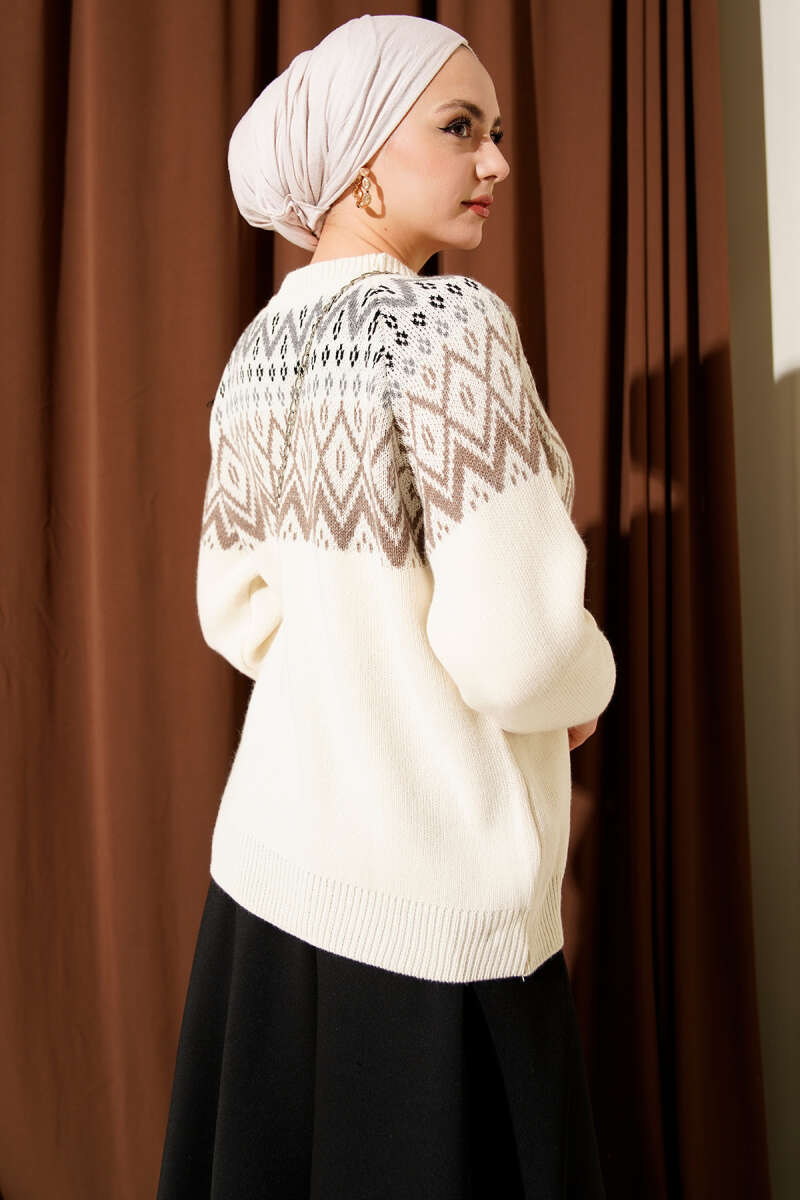 Örgü İşlemeli Triko Kazak Vizon