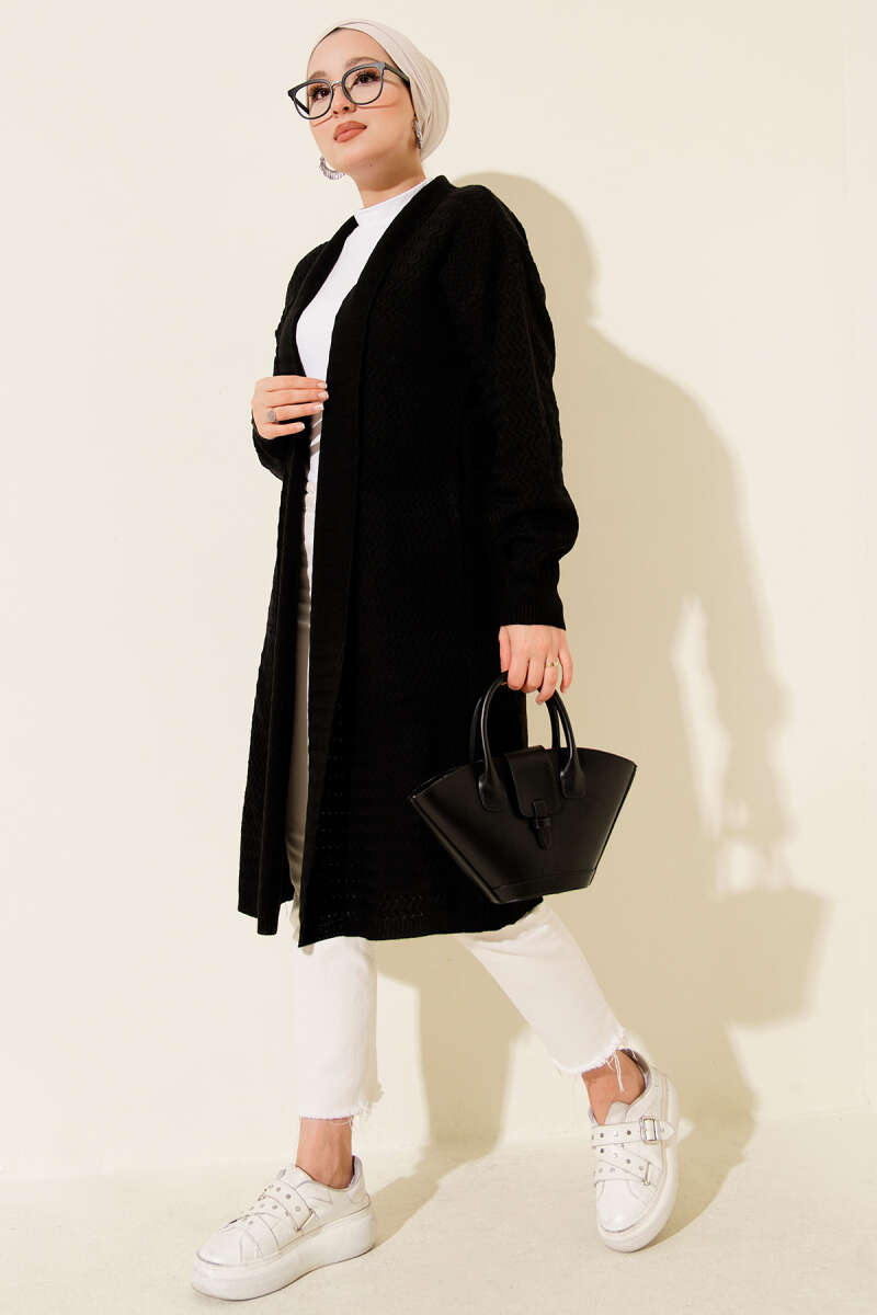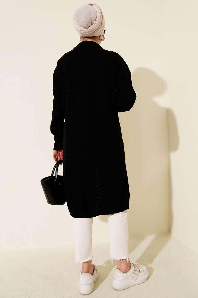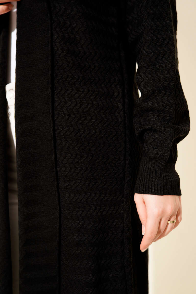 Kabartma Desenli Triko Uzun Hırka Acı Kahve