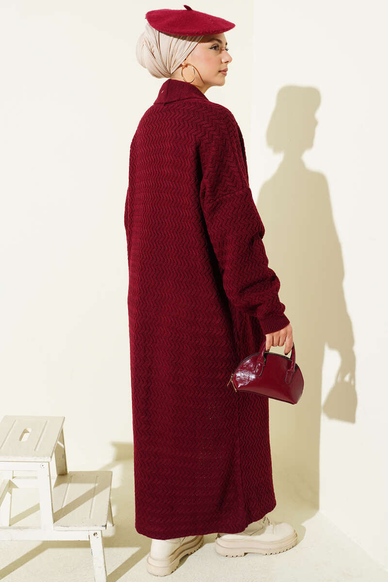 Zigzag Kabartmalı Triko Uzun Hırka Acı Kahve