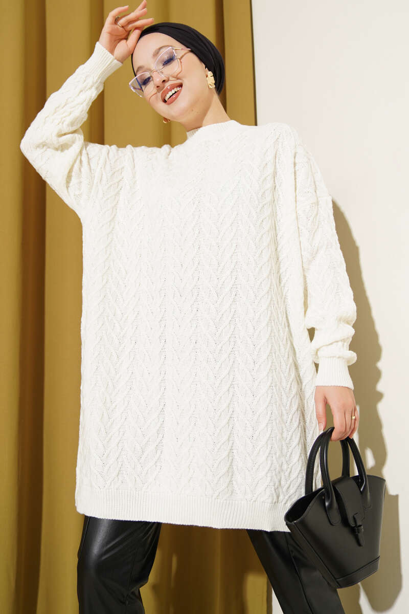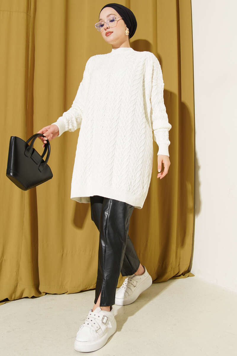 Çiçek Detaylı Yumoş Triko Tunik Nefti