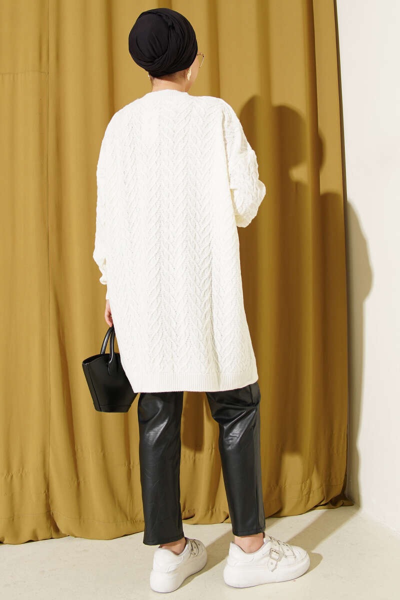 Kiraz Salkımlı Kabartma Yumoş Triko Tunik Latte