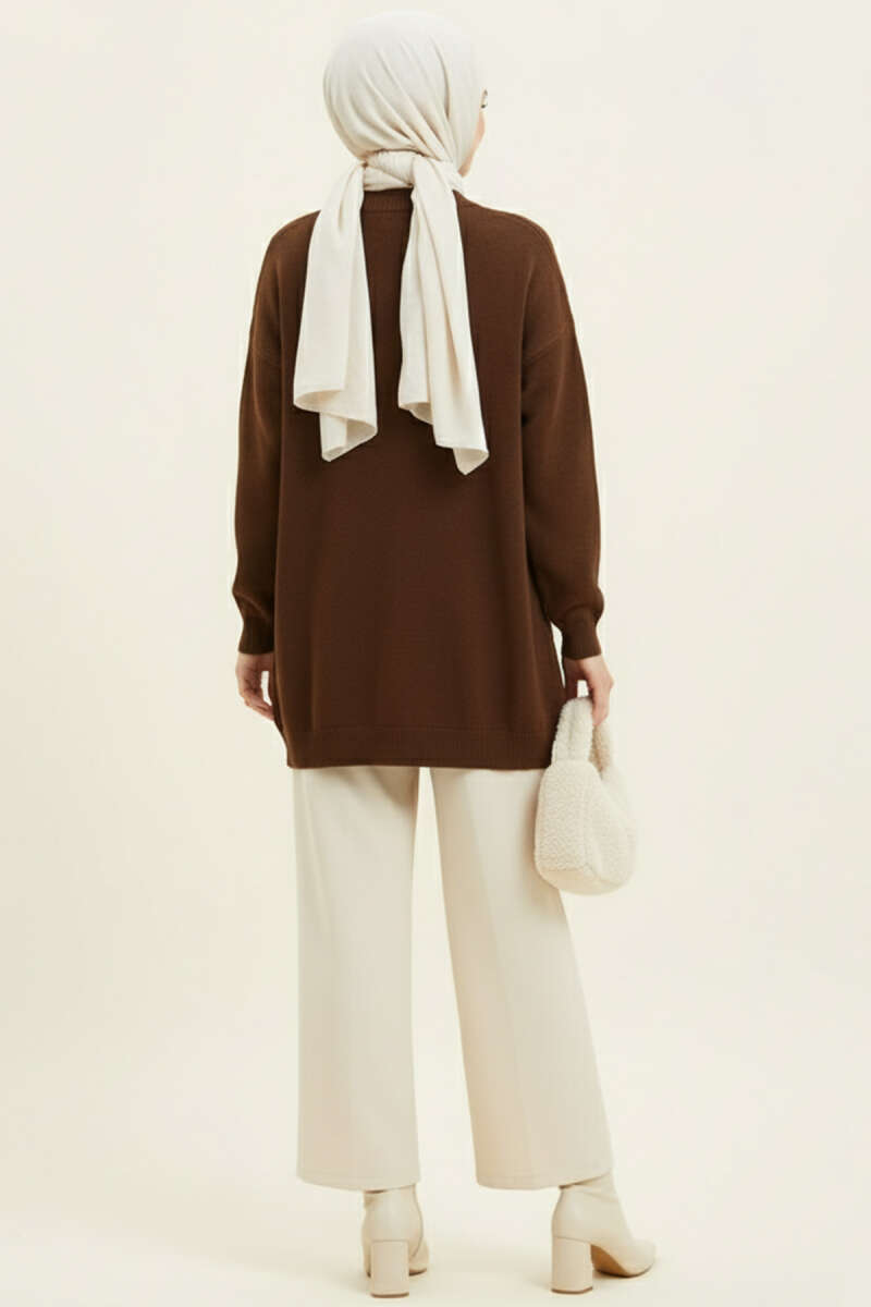 Fermuarlı Dalgıç Kumaş Gül Kurusu Hırka