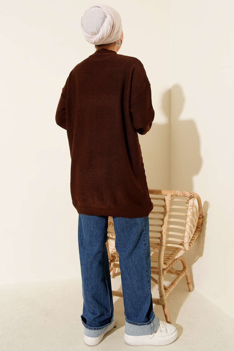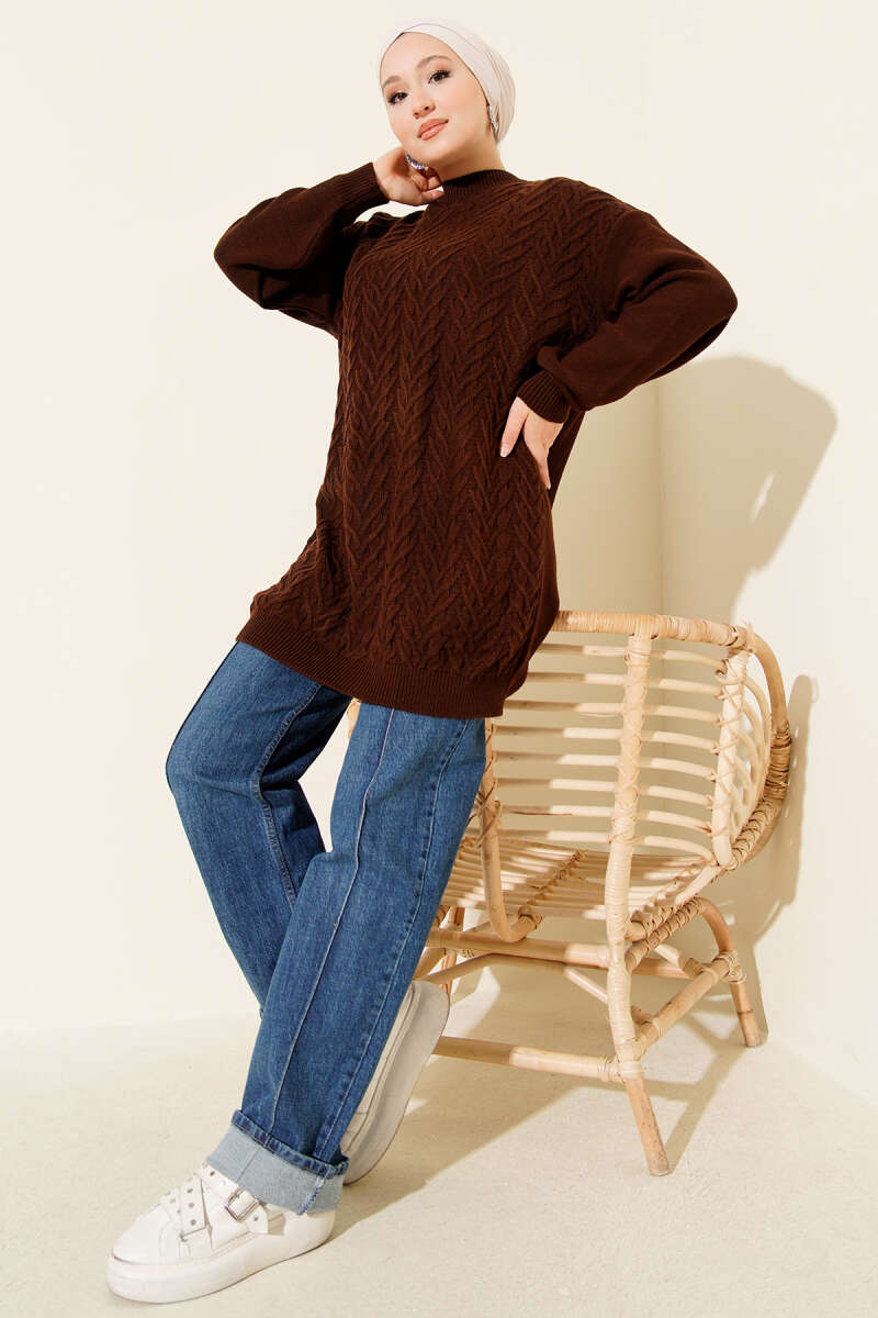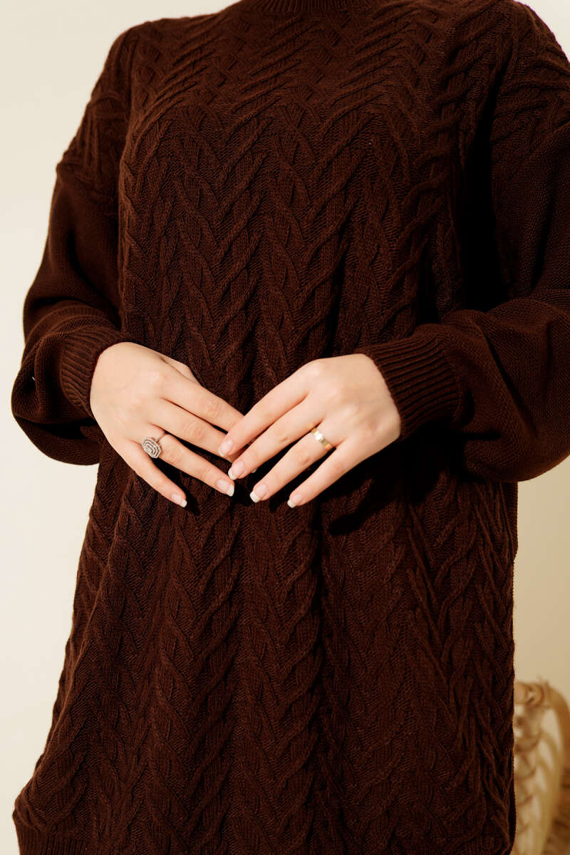 Yatay Çizgi Detaylı Basic Triko Tunik Kahve