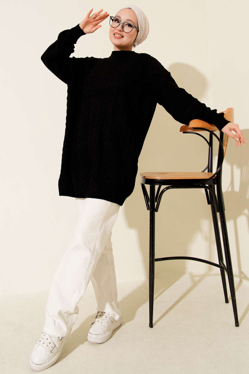 Fermuar Detaylı Triko Tunik Siyah