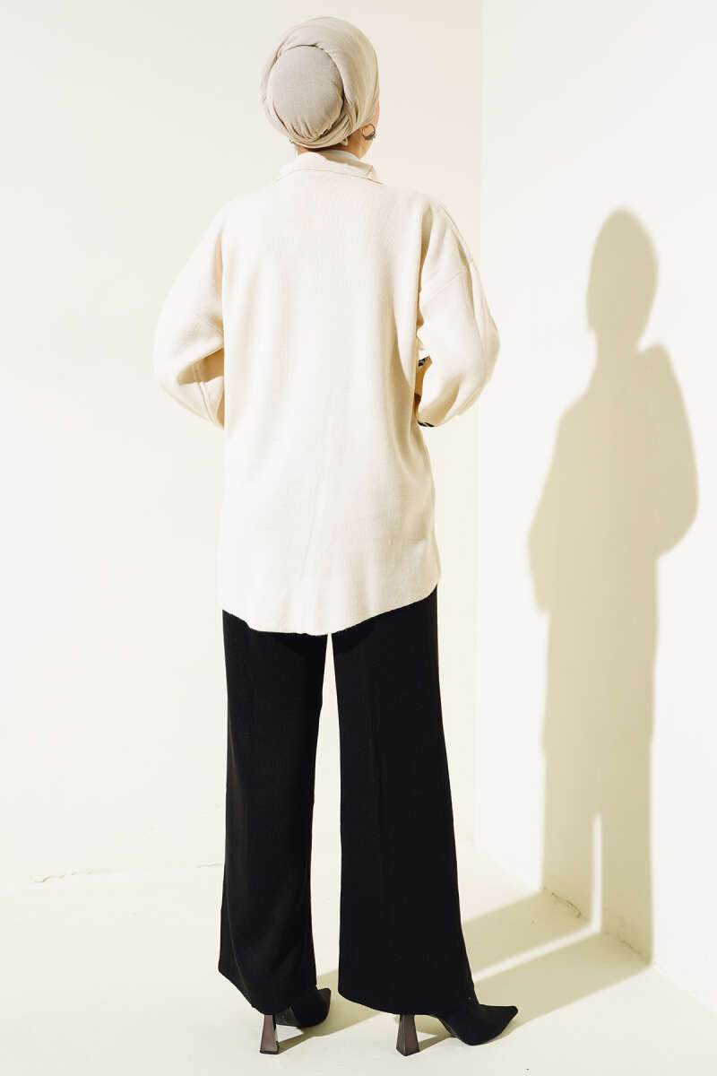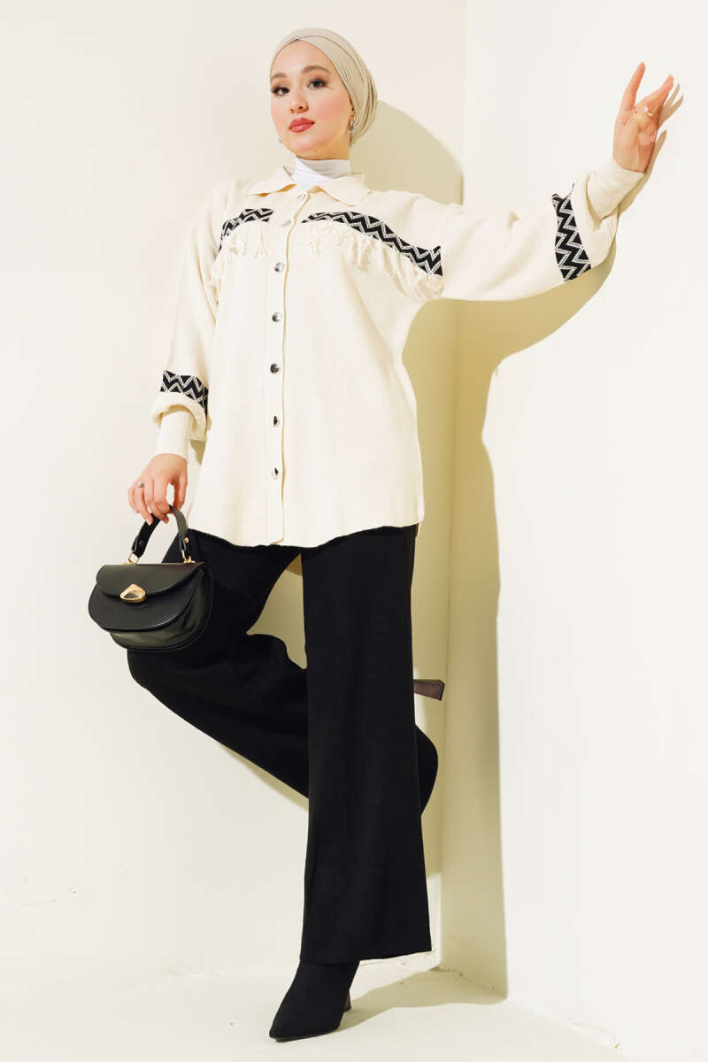Yarasa Kol Nakışlı İkili Takım Ekru
