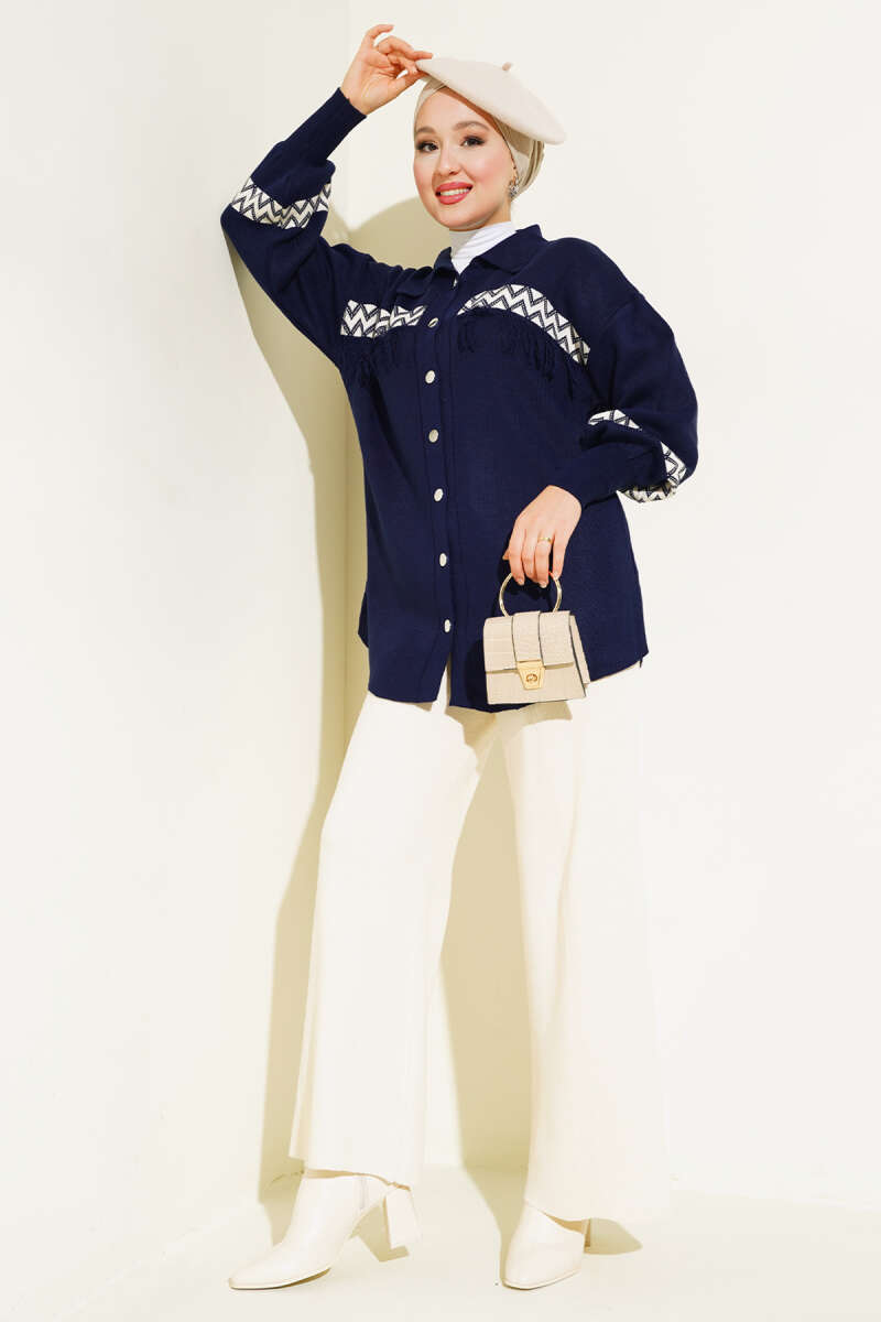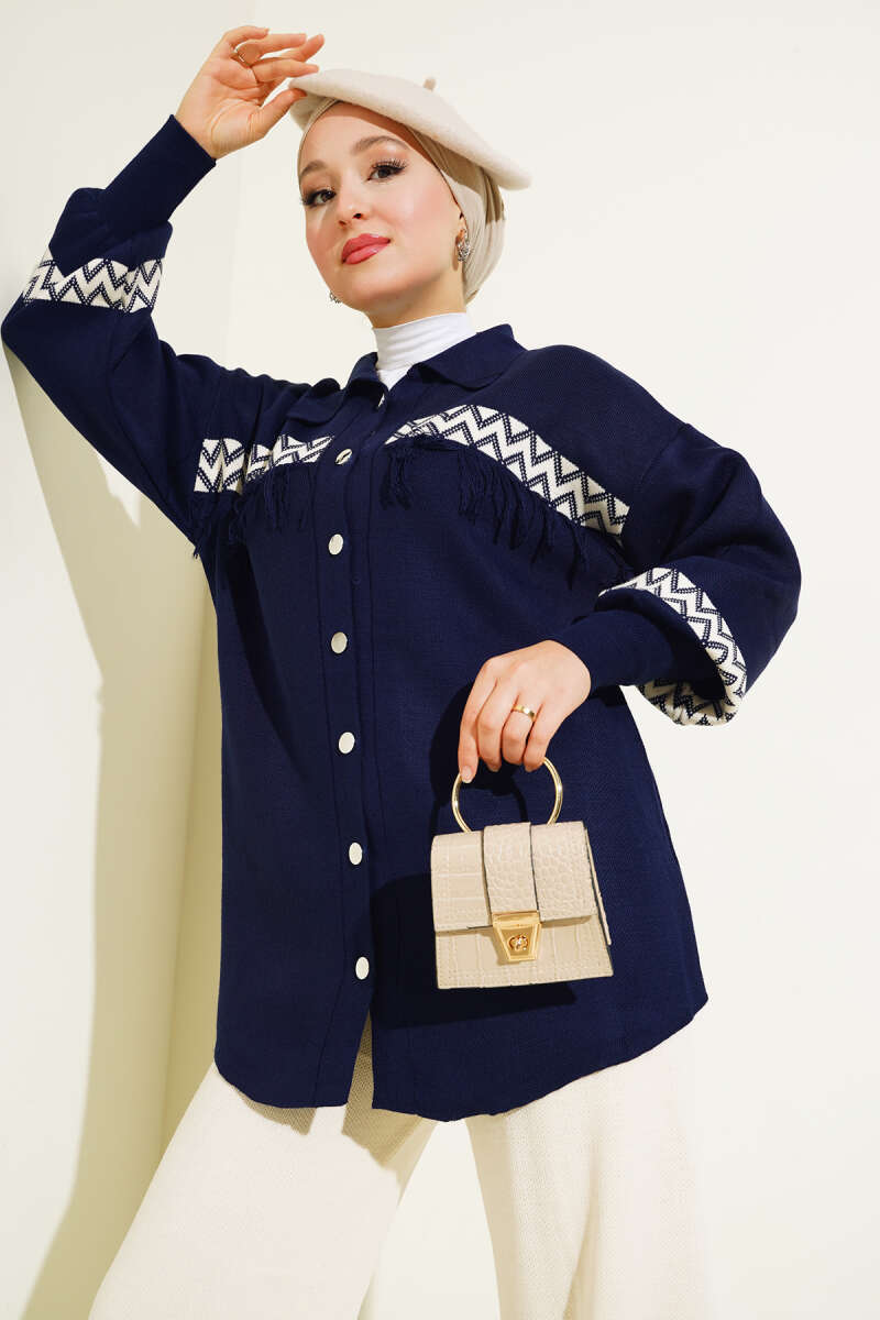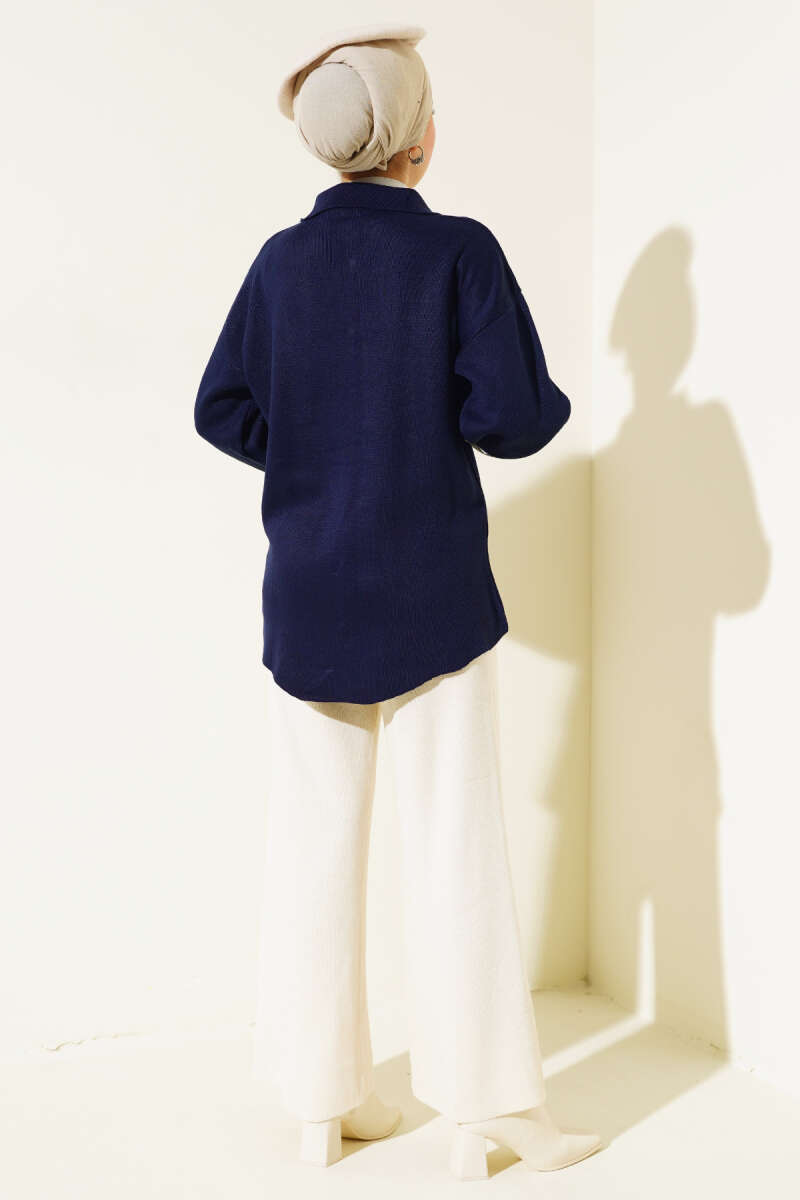 Gold Düğmeli Triko Kısa Hırka Lacivert