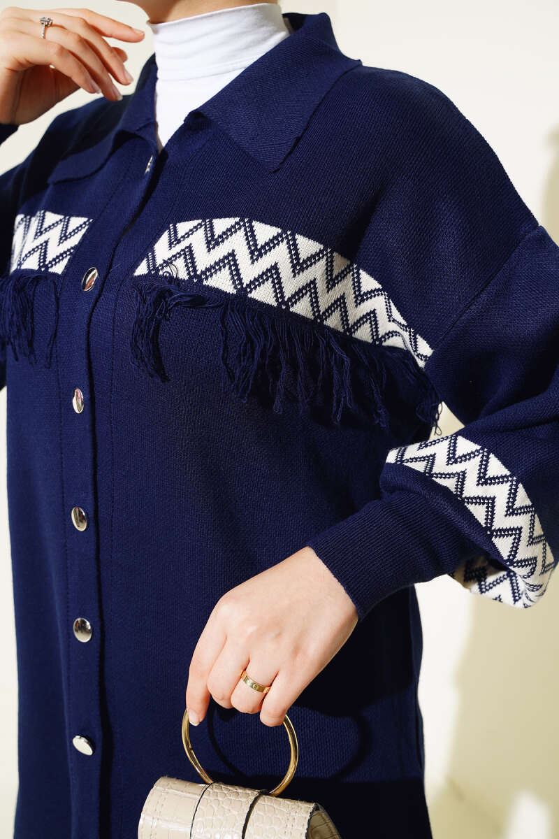 Hakim Yaka Düğmeli Kat Kat Elbise Lacivert