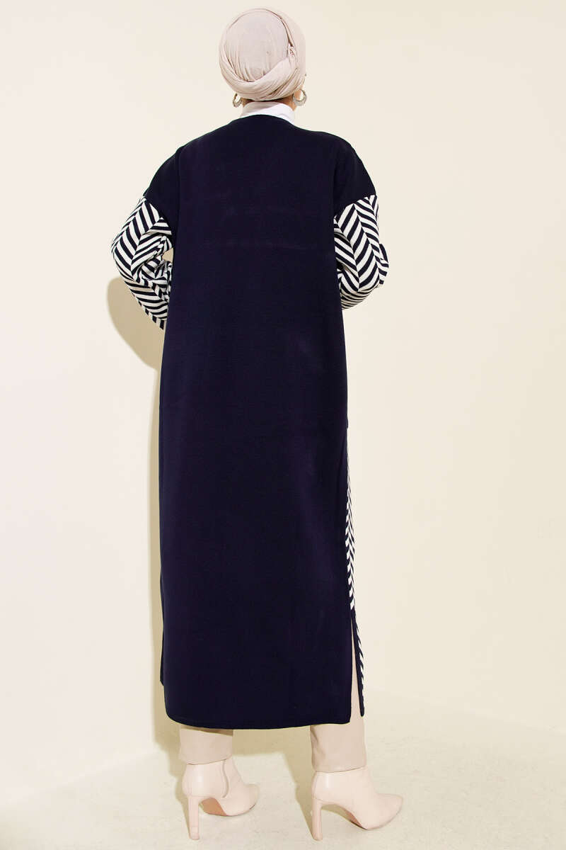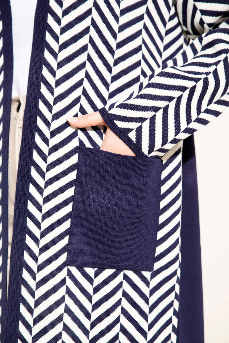 Zikzak Çizgili Desenli Uzun Triko Hırka Lacivert