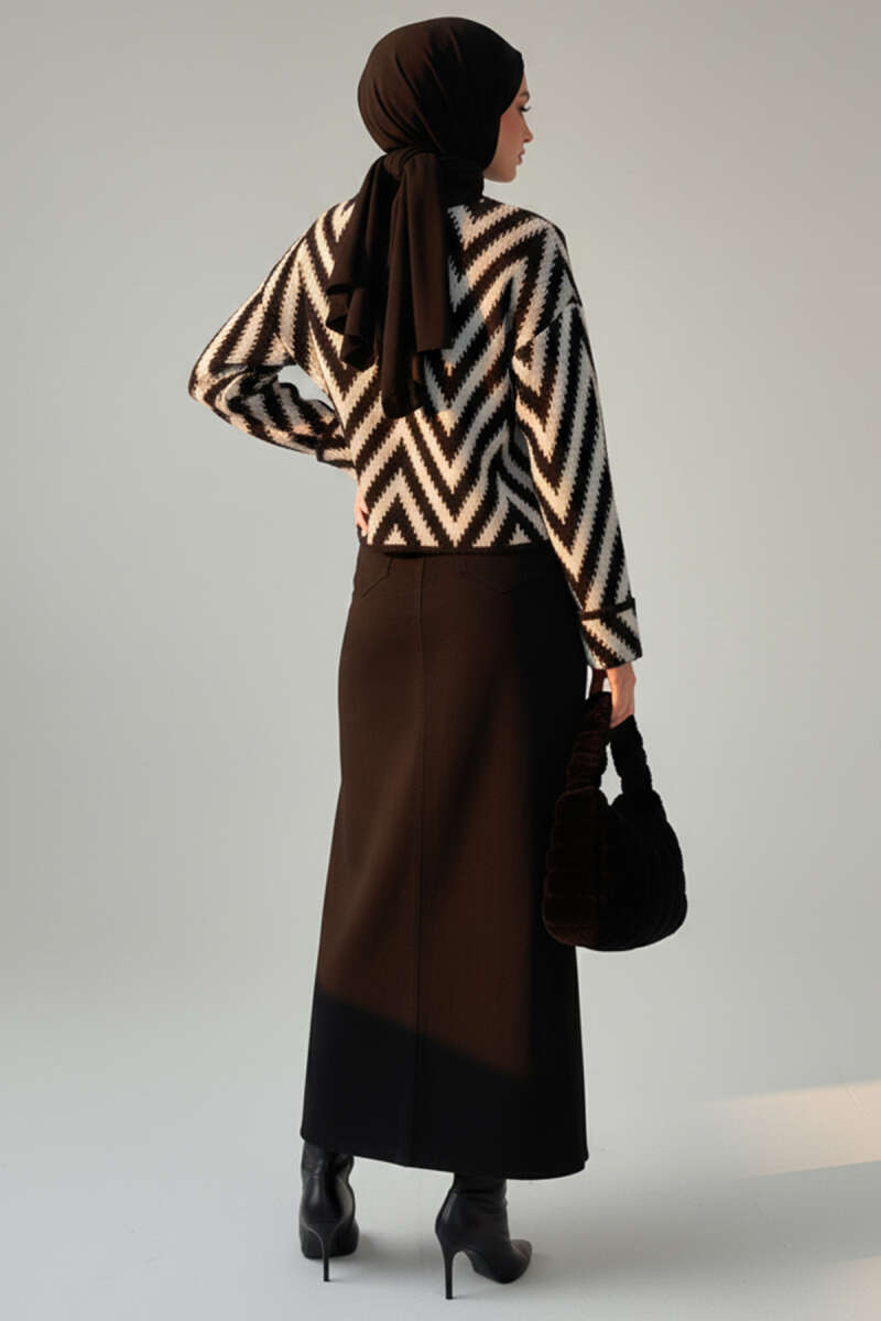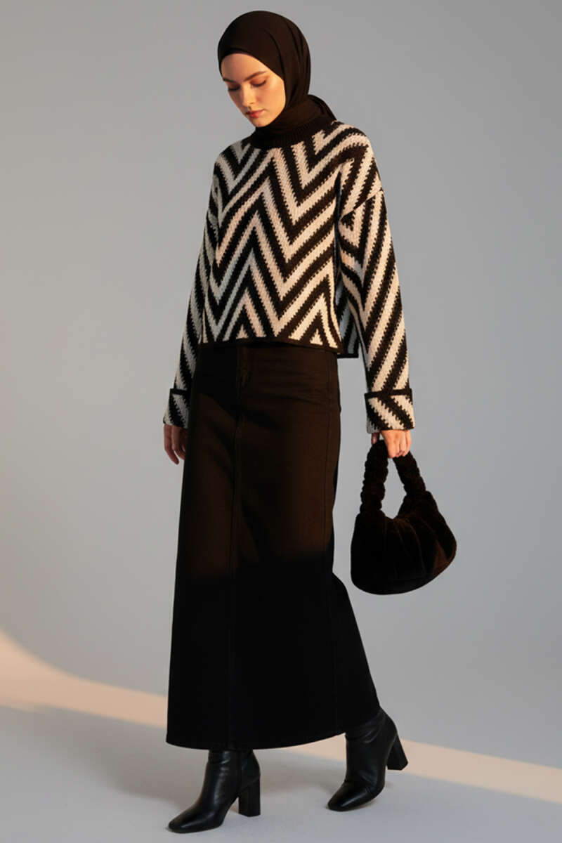 Dik Yaka Taşlı Triko Kazak Taba